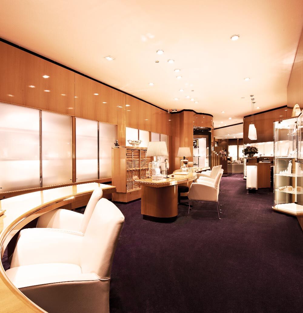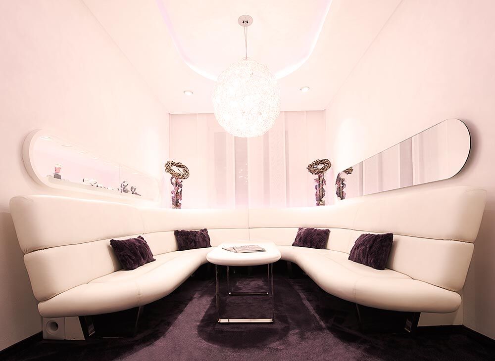 Für eine ganz ungestörte Auswahl und vertrauliche Gespräche steht neben den Beratungscorners auch unsere Lounge zu Ihrer Verfügung. Komplett mit hellem Leder ausgestattet und indirekt illuminiert, bietet Sie Ihnen ein wunderbar entspannten Rahmen bei der Auswahl einer ganz besonderen Überraschung für Ihre große Liebe – oder ein exklusives Geschenk an sich selbst.