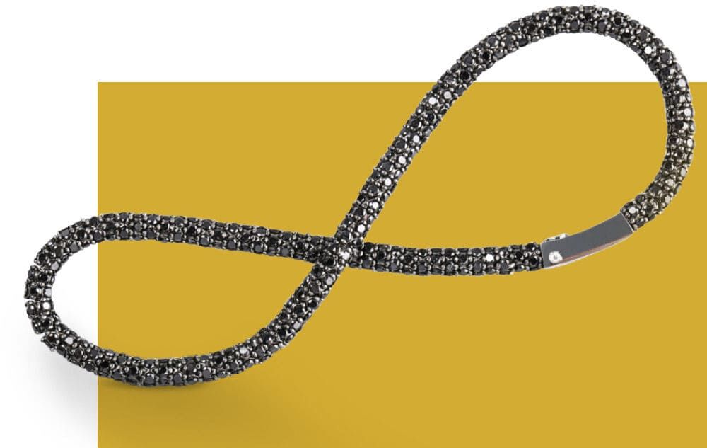 Selbst der formellste Dresscode lässt genug Spielraum für einen extravaganten Uhren-Kompagnon, wie ein Flexarmband aus schwarzen Diamanten – ideal für das Handgelenk Ihres Liebsten.