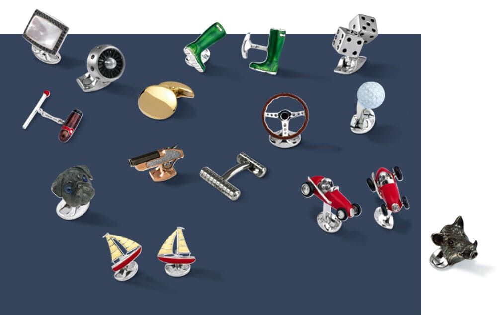 Das Londoner Label Deakin & Francis hat eine lange Tradition als Englands ältester Familien-Juwelier: Seit 1786 fertigt die Manufaktur luxuriöse Herren-Accessoires aus edlen Materialien in feiner Handarbeit. Dabei haben die kreativen Briten den Anschluss an die Jetzt-Zeit gehalten – mit Designs, die wirklich jeden zum Manschetten-Fan machen. Augenzwinkernd, rockig, passioniert, saisonal – es gibt nichts, was es nicht gibt. Überraschen Sie Ihre große Liebe doch mal zwischendurch mit einem außergewöhnlichen Accessoire. Und die edel-schlichten Klassiker für die Silberhochzeit sind natürlich auch im Programm.