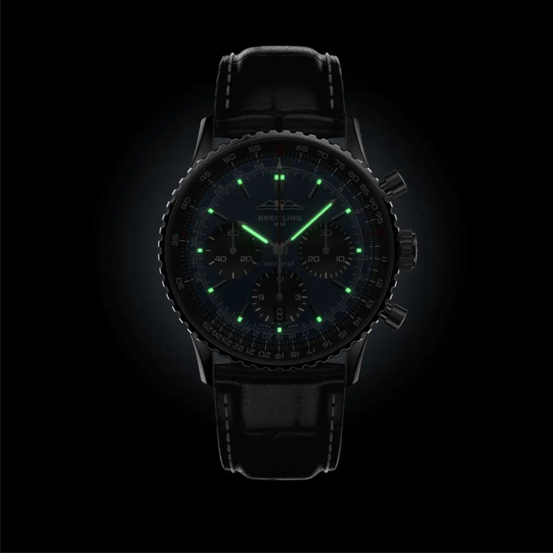 Blau mit farblich abgesetzten Chronographenzählern und applizierten Indizes