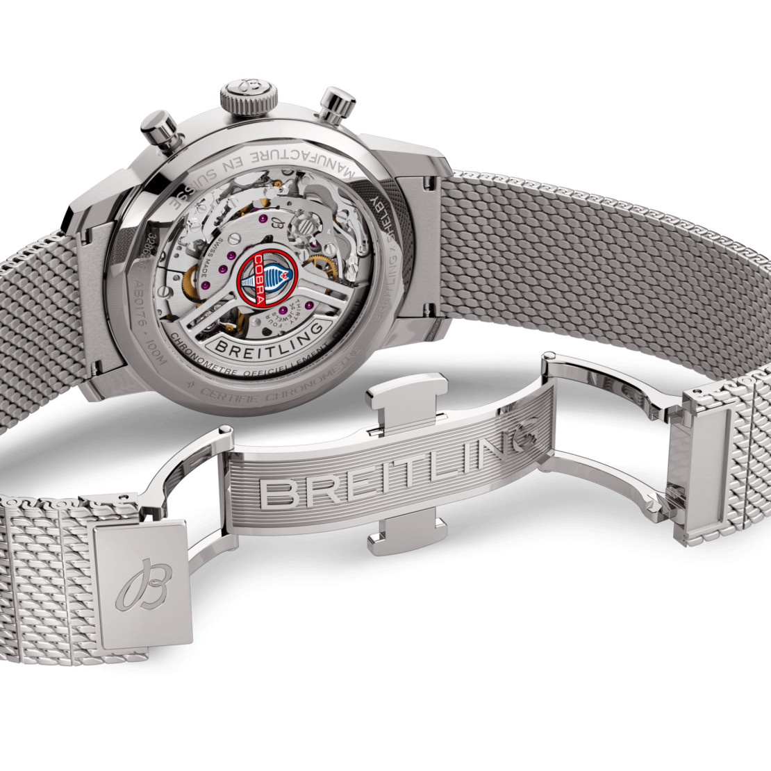 Ref. AB01763A1C1A1 - Die 1960er Jahre waren ein Jahrzehnt, das von Experimentierfreude, Spass, Freiheit und Energie geprägt war. Ob man mit einem Motorrad eine Spritztour machte oder in einem Sportwagen Gas gab, das Leben lief auf Hochtouren. Willy Breitling spürte diesen Tempowechsel und nahm sich vor, einen unkonventionellen Chronographen zu entwickeln, der den Schwung der Epoche einfing. Er nannte ihn die Top Time. Diese lebendige Tradition wird auch heute noch fortgesetzt, denn Breitling arbeitet bei der Entwicklung der Top Time mit einigen der angesagtesten Namen der Auto- und Motorradindustrie zusammen.