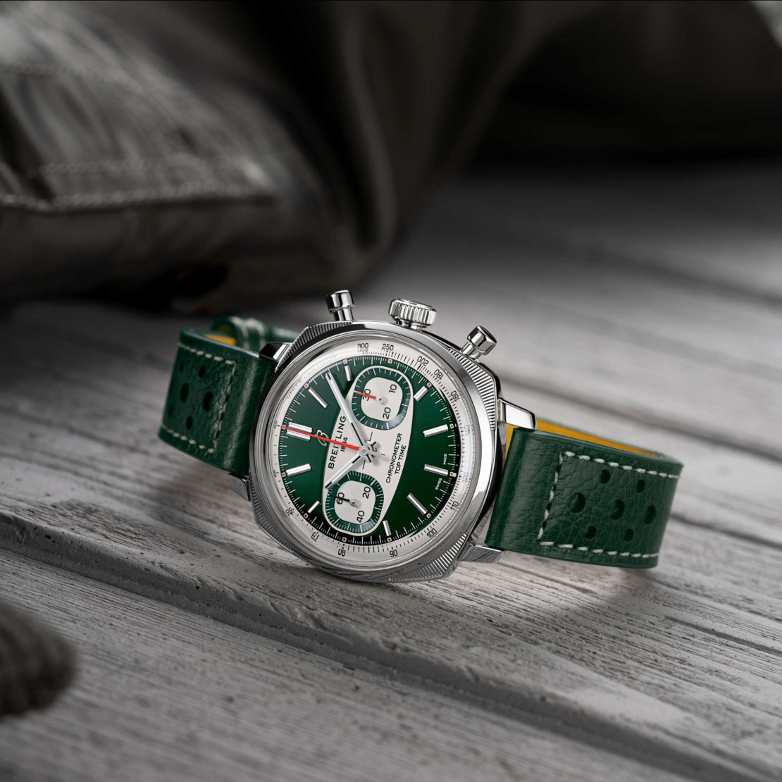 Ref. AB01771A1L1X1 - Die in den 1960er Jahren eingeführte, unkonventionelle, vom Rennsport inspirierte Chronographenlinie von Willy Breitling fing die freizügige Atmosphäre dieser Ära ein. Heute verkörpert die neue Top Time-Kollektion diese adrenalingeladene Energie und verbindet modernes Retro-Design mit innovativer Leistung. Die Top Time Racing ist ein Nachfolger einiger der eindrucksvollsten Top Time-Designs aus den 1960er Jahren.