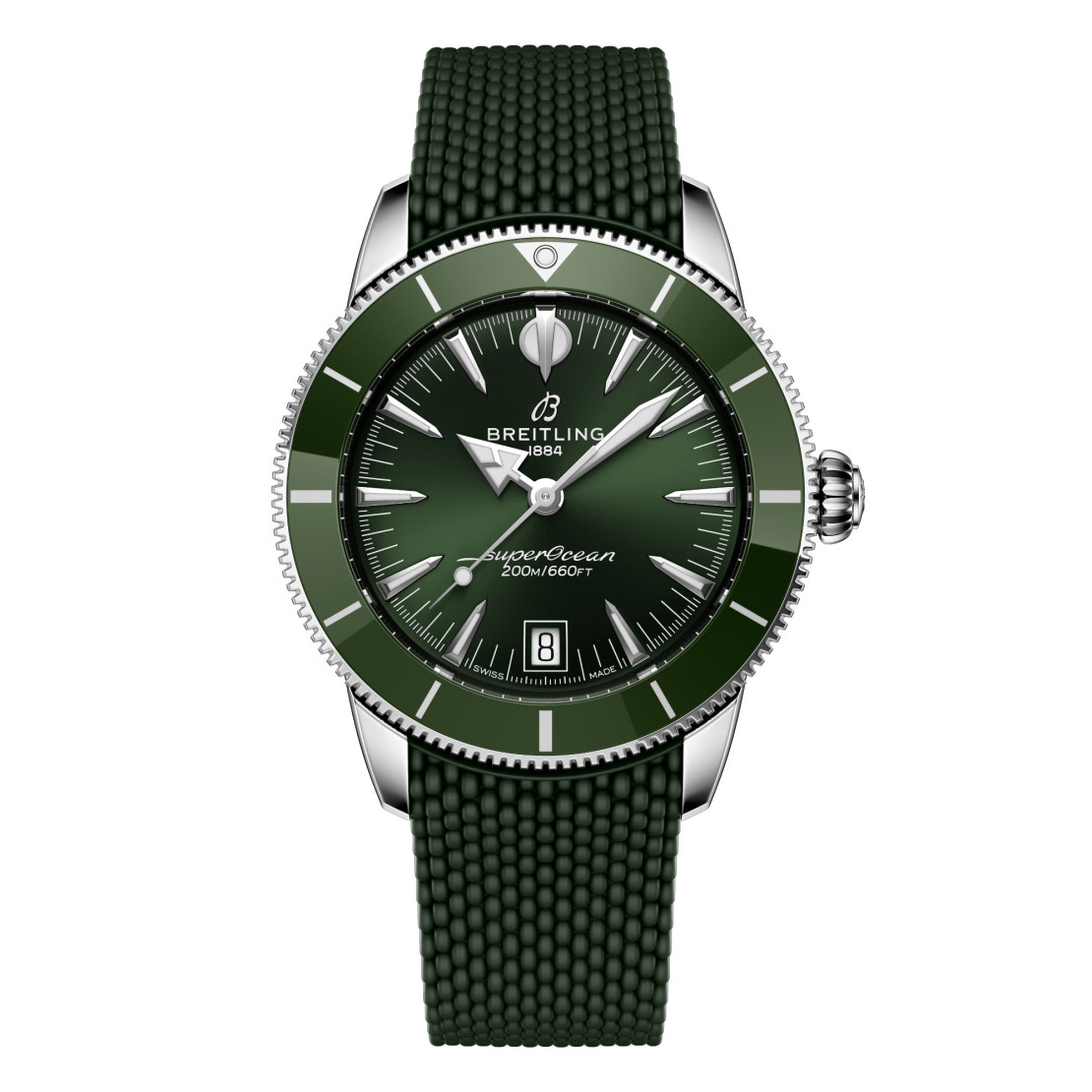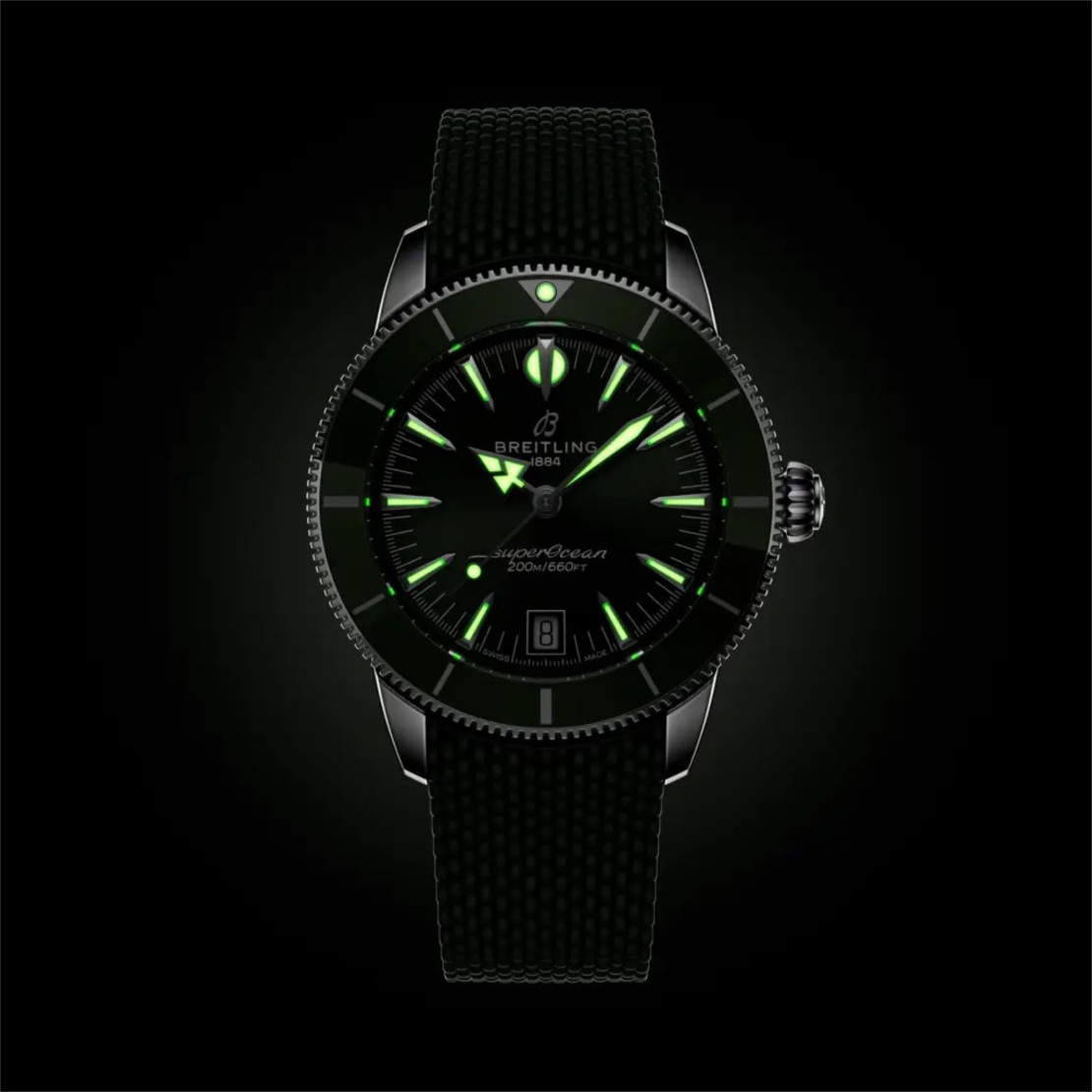 Auch heute noch ist diese Philosophie das Herzstück der Superocean Heritage. Die Seele der 50er Jahre, aber im neuen Kleid für die Gegenwart. Die neueste Superocean Heritage baut auf allem auf, was das Original unverwechselbar gemacht hat, und verfeinert es. Die Kollektion führt das Automatik-Uhrwerk B31 ein, Breitlings erstes exklusives Manufaktur-Kaliber mit drei Zeigern. Eine Lünette mit Keramikeinlage bietet außergewöhnliche Kratzfestigkeit, während die integrierten Armbänder aus Mesh-Metall oder Mesh-Kautschuk eng am Gehäuse anliegen und mit Faltschließen für ein sauberes, wasserdichtes Finish gesichert werden. Ein diskretes Datumsfenster auf sechs Uhr und die originalen Signaturzeiger– Pfeil für die Stunden, Speer für die Minuten – sorgen für Ablesbarkeit und Ausgewogenheit, über oder unter der Oberfläche.