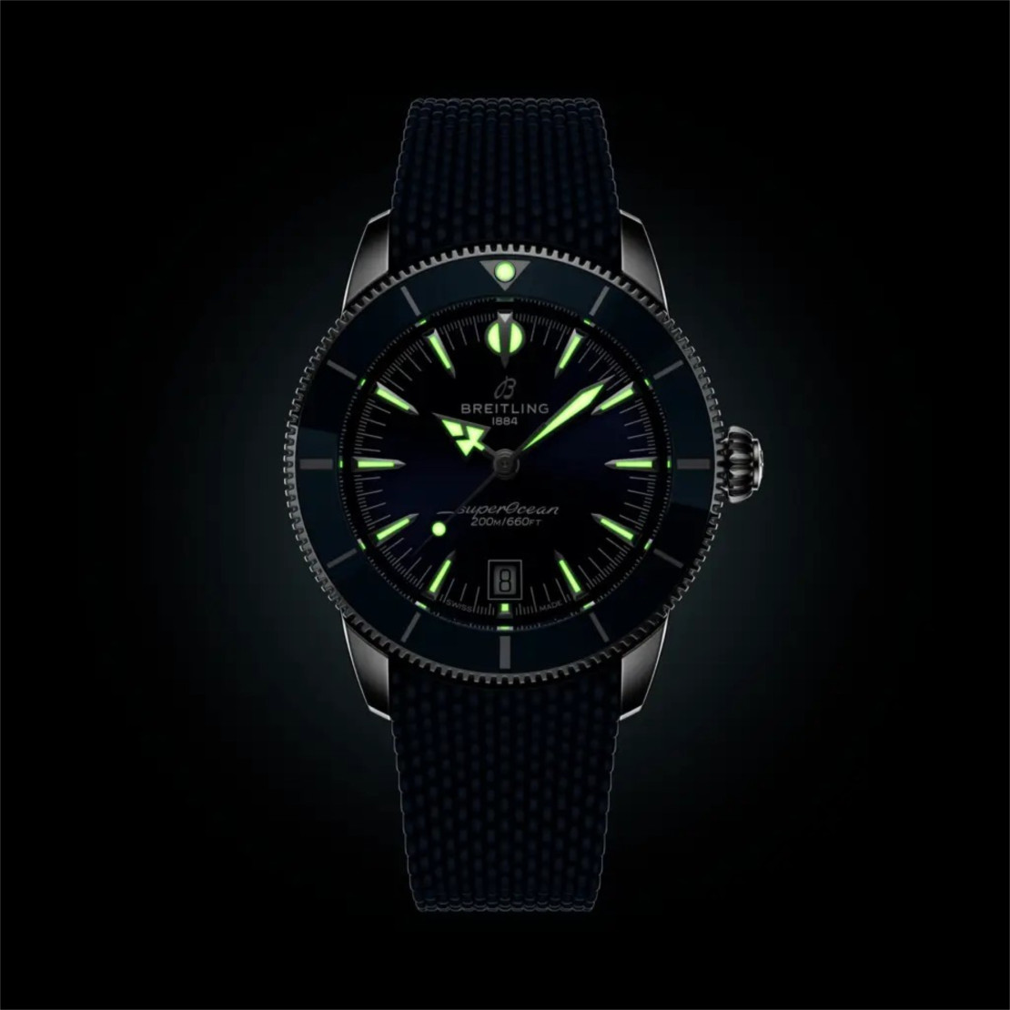 Auch heute noch ist diese Philosophie das Herzstück der Superocean Heritage. Die Seele der 50er Jahre, aber im neuen Kleid für die Gegenwart. Die neueste Superocean Heritage baut auf allem auf, was das Original unverwechselbar gemacht hat, und verfeinert es. Die Kollektion führt das Automatik-Uhrwerk B31 ein, Breitlings erstes exklusives Manufaktur-Kaliber mit drei Zeigern. Eine Lünette mit Keramikeinlage bietet außergewöhnliche Kratzfestigkeit, während die integrierten Armbänder aus Mesh-Metall oder Mesh-Kautschuk eng am Gehäuse anliegen und mit Faltschließen für ein sauberes, wasserdichtes Finish gesichert werden. Ein diskretes Datumsfenster auf sechs Uhr und die originalen Signaturzeiger– Pfeil für die Stunden, Speer für die Minuten – sorgen für Ablesbarkeit und Ausgewogenheit, über oder unter der Oberfläche.
