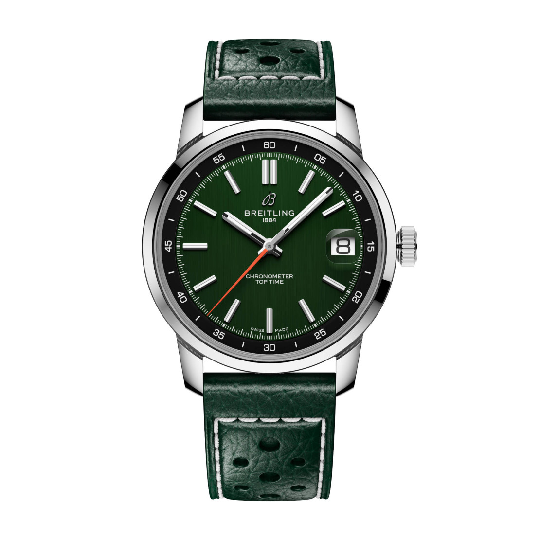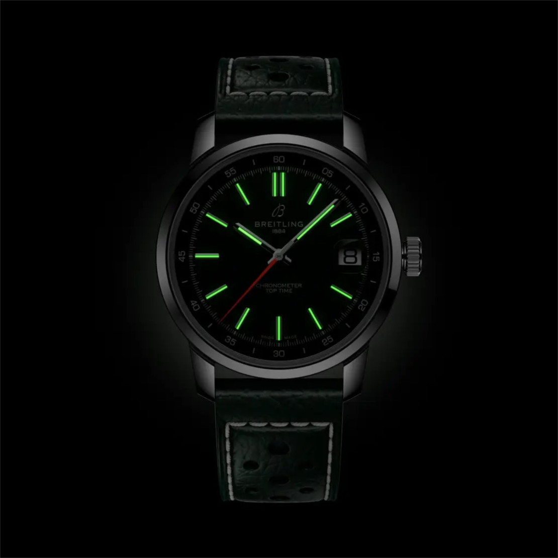 Ref. AB3113171L1X1 - Die im Jahr 2025 neu lancierte Top Time B31 stellt das Debüt des Manufakturwerks B31 im Hause Breitling dar. Das 38-mm-Gehäuse bleibt der DNA der Top Time treu und gewährleistet einen makellosen Stil, der an jedes Handgelenk passt. Die Top Time B31 vereint Retro-Ästhetik mit modernem Anspruch. Das Design des Zifferblatts ist von den Armaturenbrettern der Oldtimer inspiriert, während das 38-mm-Gehäuse ein Gleichgewicht zwischen Vintage-Proportionen und modernem Design schafft und dank seiner universellen Grösse an jedes Handgelenk passt.
