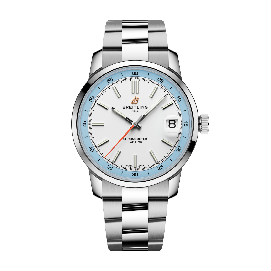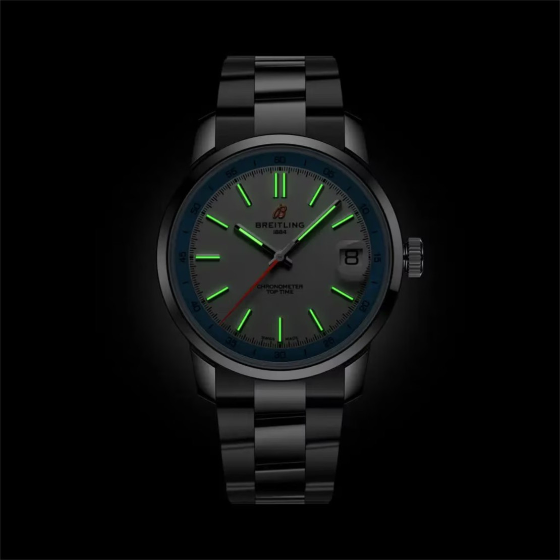 Ref. AB3113281A1A1 - Die im Jahr 2025 neu lancierte Top Time B31 stellt das Debüt des Manufakturwerks B31 im Hause Breitling dar. Das 38-mm-Gehäuse bleibt der DNA der Top Time treu und gewährleistet einen makellosen Stil, der an jedes Handgelenk passt. Die Top Time B31 vereint Retro-Ästhetik mit modernem Anspruch. Das Design des Zifferblatts ist von den Armaturenbrettern der Oldtimer inspiriert, während das 38-mm-Gehäuse ein Gleichgewicht zwischen Vintage-Proportionen und modernem Design schafft und dank seiner universellen Grösse an jedes Handgelenk passt.