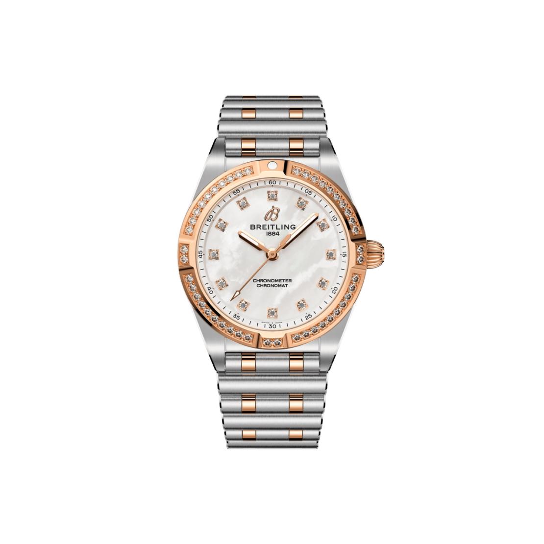 Ref. U72310531A1U1 - Die zierliche Chronomat 28 liegt voll im Trend und ist dennoch zeitlos – eine vielseitige, sportlich-schicke Uhr für jede Gelegenheit. Doch diese Blickfänger haben viel mehr zu bieten als nur ihre kompakte neue Grösse.Perlmutt in verschiedenen Farbtönen und rückverfolgbare, im Labor gezüchtete Diamanten verleihen den dezenten und doch edlen Zeitmessern den Charakter eines Schmuckstücks. Wählen Sie Gehäuse- und Rouleaux-Armband in der gewünschten Ausführung: von schlichtem Edelstahl bis zum zweifarbigen Metallmix – alle mit einer komfortablen Doppelfaltschliesse ausgestattet. Die Chronomat 28 wird von einem Breitling-Kaliber 72, einem COSC-zertifizierten SuperQuartz™-Chronometer, angetrieben.