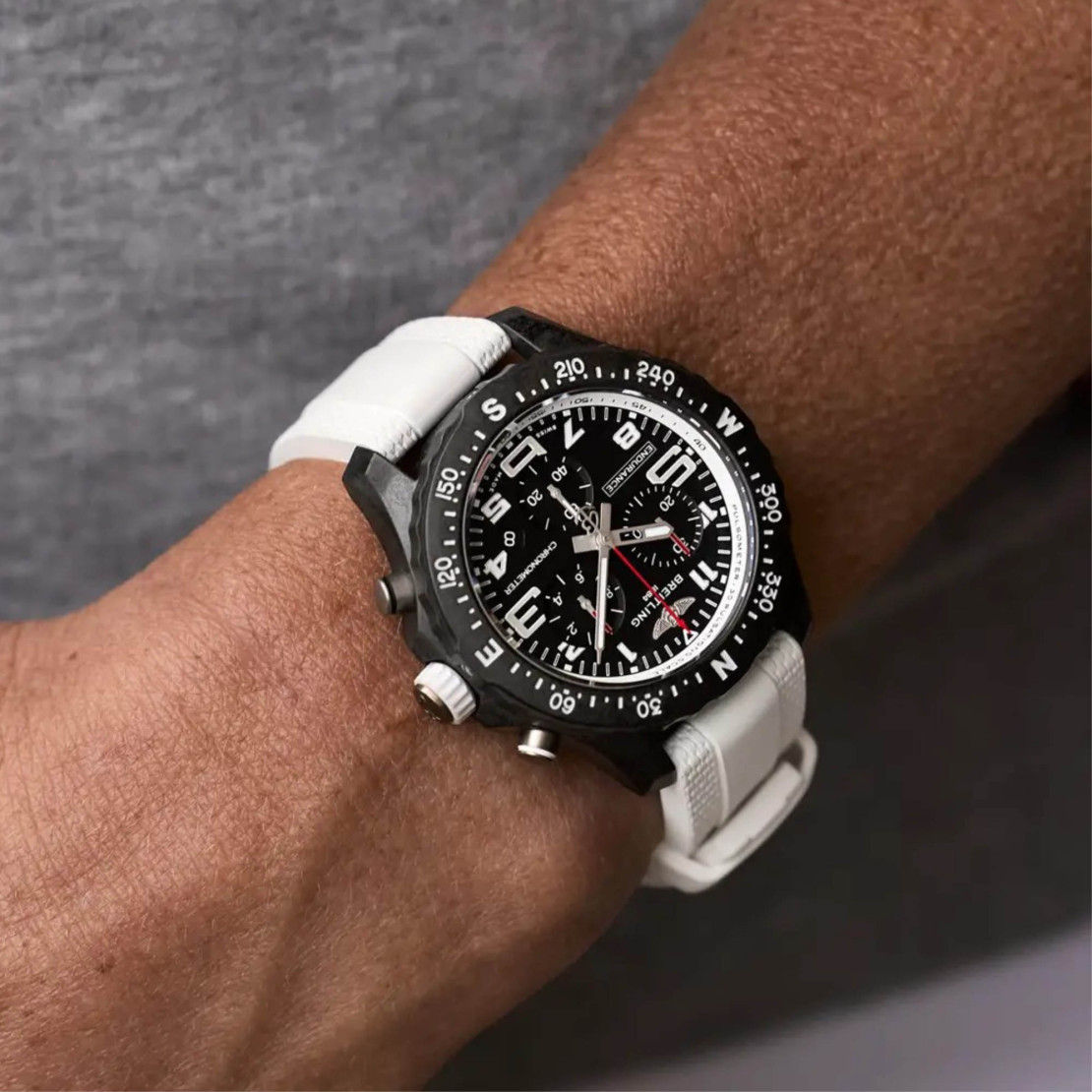 Die Endurance Pro verfügt über ein ultraleichtes Gehäuse aus Breitlight®. Dieser widerstandsfähige Werkstoff ist 3,3-mal leichter als Titan und 5,8-mal leichter als Edelstahl. Das antimagnetische, thermisch stabile und hypoallergene Breitlight® ist hochgradig kratz-, zug- und korrosionsfest. Die haptische Wirkung ist wärmer als die von Metall; der leichte Textureffekt unterstreicht den Einfallsreichtum des Designs. Das Material ist zu 100 % Swiss-made und nur bei Breitling erhältlich. Neben einem Durchmesser von 44 mm oder 38 mm haben Athleten bei der Endurance Pro ausserdem die Wahl zwischen zahlreichen farbenfrohen Zifferblättern und Kautschukarmbändern mit der Breitlight®-Dornschliesse. Beide Grössen werden vom Breitling-Kaliber 82 bzw. 83 angetrieben. Diese COSC-zertifizierten SuperQuartz™-Chronographen zeichnen sich durch eine aussergewöhnliche Ganggenauigkeit aus.