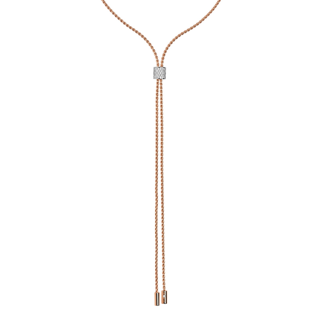 Ref. 89403CX_BB_R_RBX_070 - Aria besteht aus einer neuen zarten, feinmaschigen Goldkette und richtet sich an aufstrebende Luxuskonsumenten, die den Athleisure-Modetrend aufgreifen. Die Stücke der Aria-Kollektion (Ohrringe und Halsketten) wurden so entworfen, dass sie in den drei Goldfarben gemischt und aufeinander abgestimmt werden können, mit goldenen Zylindern, die mit weißen oder schwarzen Diamanten besetzt sind, für Damen und Herren.