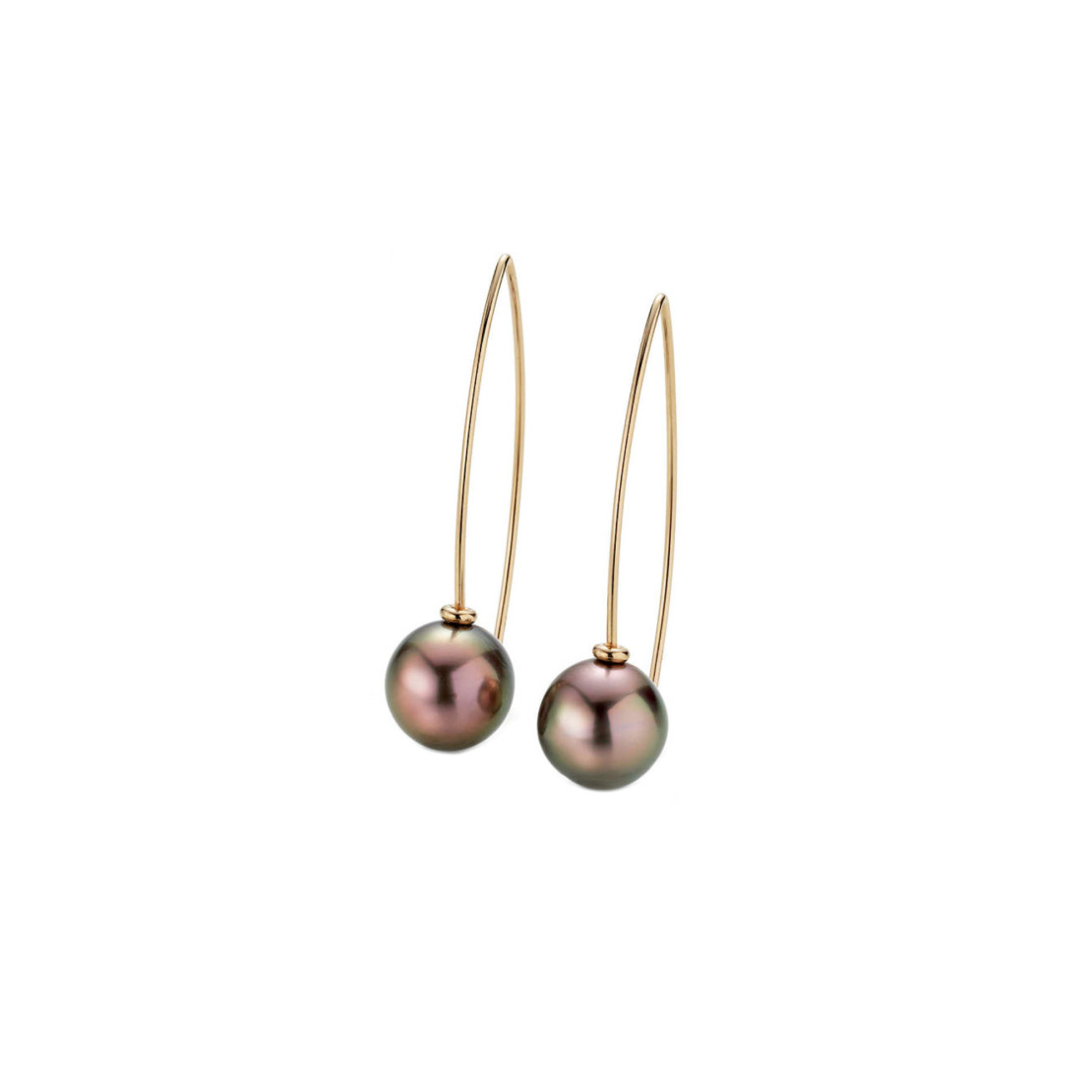 2 Tahiti-Zuchtperlen braun rund 9-10 mm, poliert