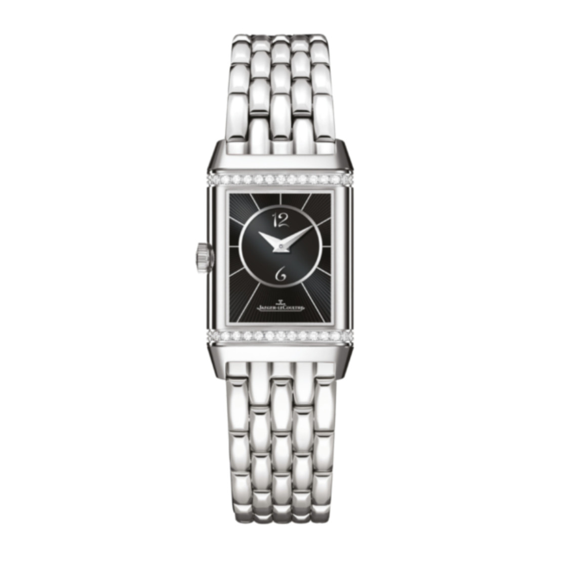 Versilbert, Vertikal satiniert und guillochiert, arabische Ziffern