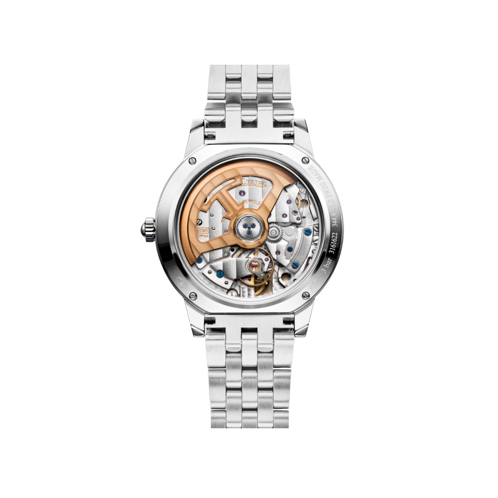 Versilbert, guillochiert, schwarz, aufgedruckt mit arabischen Ziffern