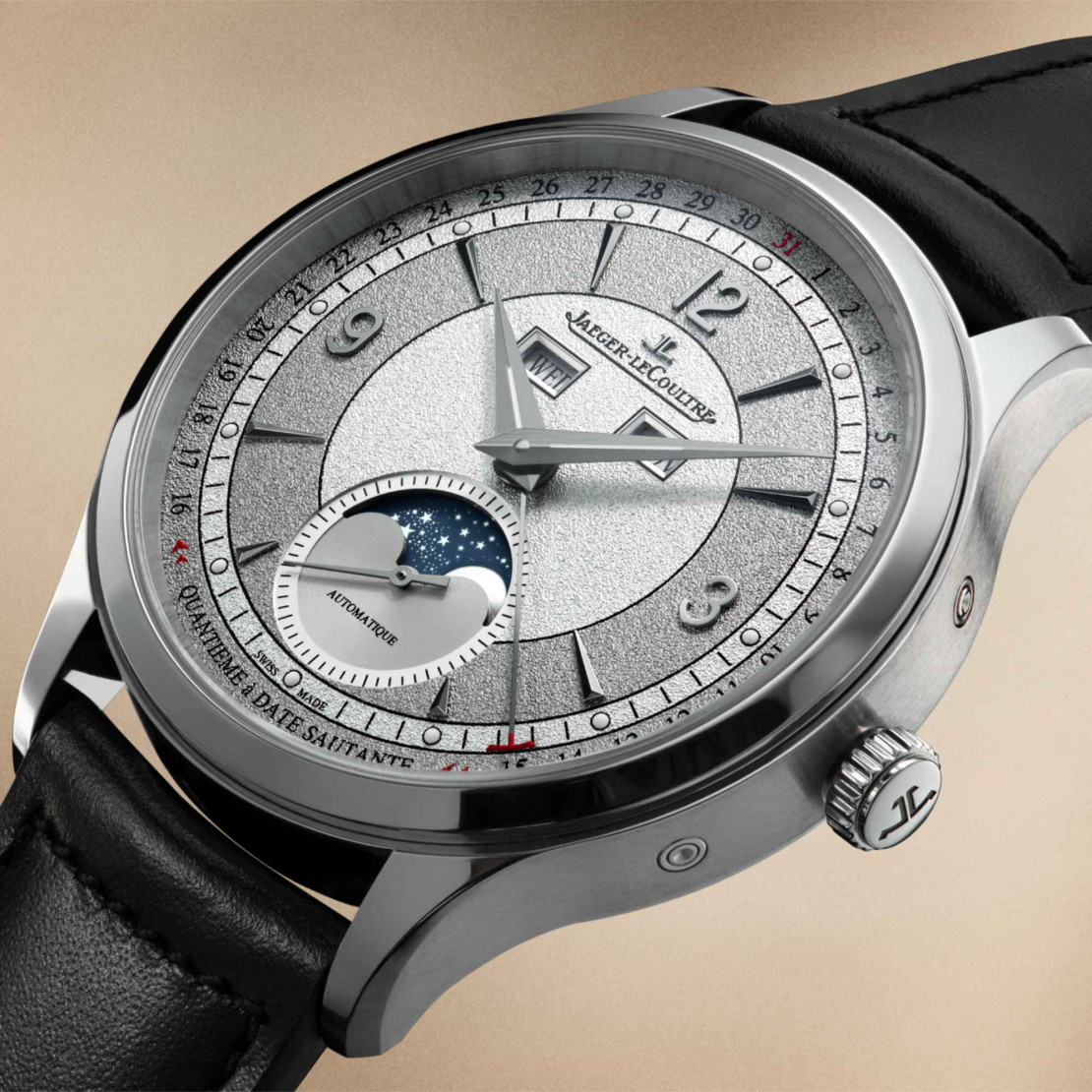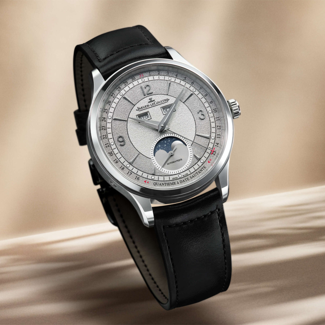 Ref. 4148450 - Die limitierte Edition der Master Control Calendar 2025 besticht durch ein Zifferblatt, das mit subtiler Textur und feinen Grauschattierungen spielt: Eine fein gekörnte Oberfläche wechselt zwischen zwei Grautönen, die in konzentrischen Ringen angeordnet sind – für ein Ergebnis von eindrucksvoller Tiefe und komplexer Raffinesse. Die Tages- und Monatsanzeigen greifen den Grauton des Zifferblatts auf und fügen sich nahtlos in das harmonische, moderne Gesamtbild ein. Im Wechselspiel des Lichts erwachen die zarten Farbunterschiede zum Leben, während der Minutenring und die Dauphine-Zeiger mit Super-Luminova® versehen wurden und dezent im Dunkeln leuchten. Die springende Datumsanzeige zwischen dem 15. und 16. Tag fällt mit ihrer ankerförmigen Spitze – eine subtile Erinnerung an das Logo der Maison – in leuchtendem Rot sofort ins Auge. Dieses kleine Detail von großer Raffinesse erleichtert die Ablesbarkeit der Anzeigen. Erfassen Sie alle Nuancen der Zeit mit diesem ausgesprochen modernen Zeitmesser, der in einer limitierten Auflage von 500 Exemplaren hergestellt wurde.