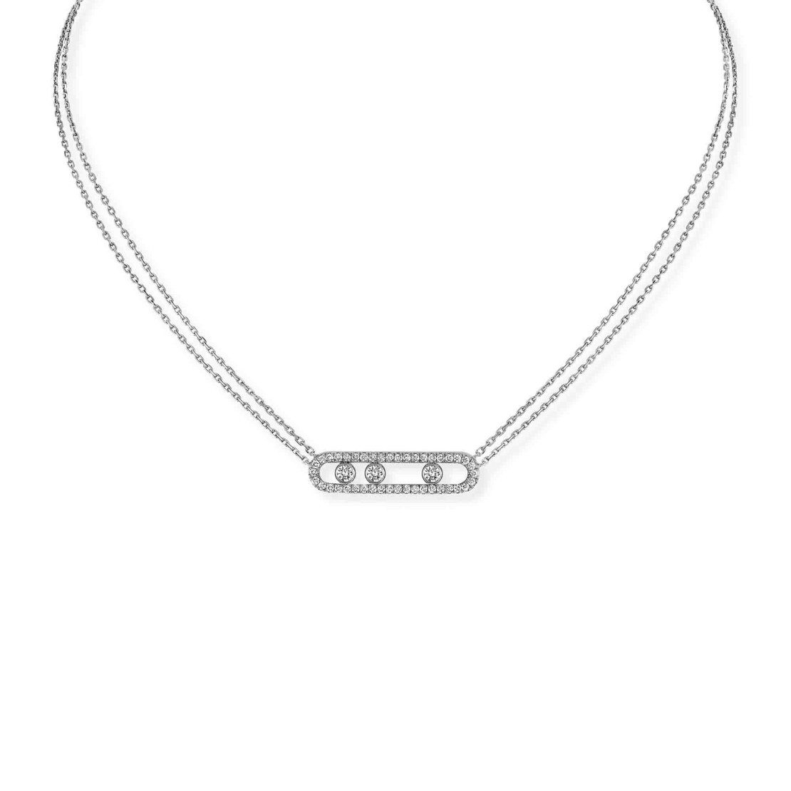 Ref. 03994-WG - Innerhalb von zehn Jahren, hat sich die Move Kollektion über den Status des „It“-Schmucks hinausentwickelt und geht nun in als ikonische Kollektion in die Schmuckgeschichte ein. Die Move Schmuckstücke sind voller Poesie, mit ihren drei Diamanten, die fest in ihren kostbaren Bahnen sitzen. Die Bewegung der Steine entsprang einer Kindheitserinnerung Valerie Messikas: „Als ich ein kleines Mädchen war, spielte mein Vater immer mit den Diamanten in seinen Händen, wenn er sie mir zeigte. Das Licht erweckte sie zum Leben und so konnte ich einen bunten Regenbogen in den Steinen sehen. Ich wollte diese Magie der Diamanten neu erschaffen“.