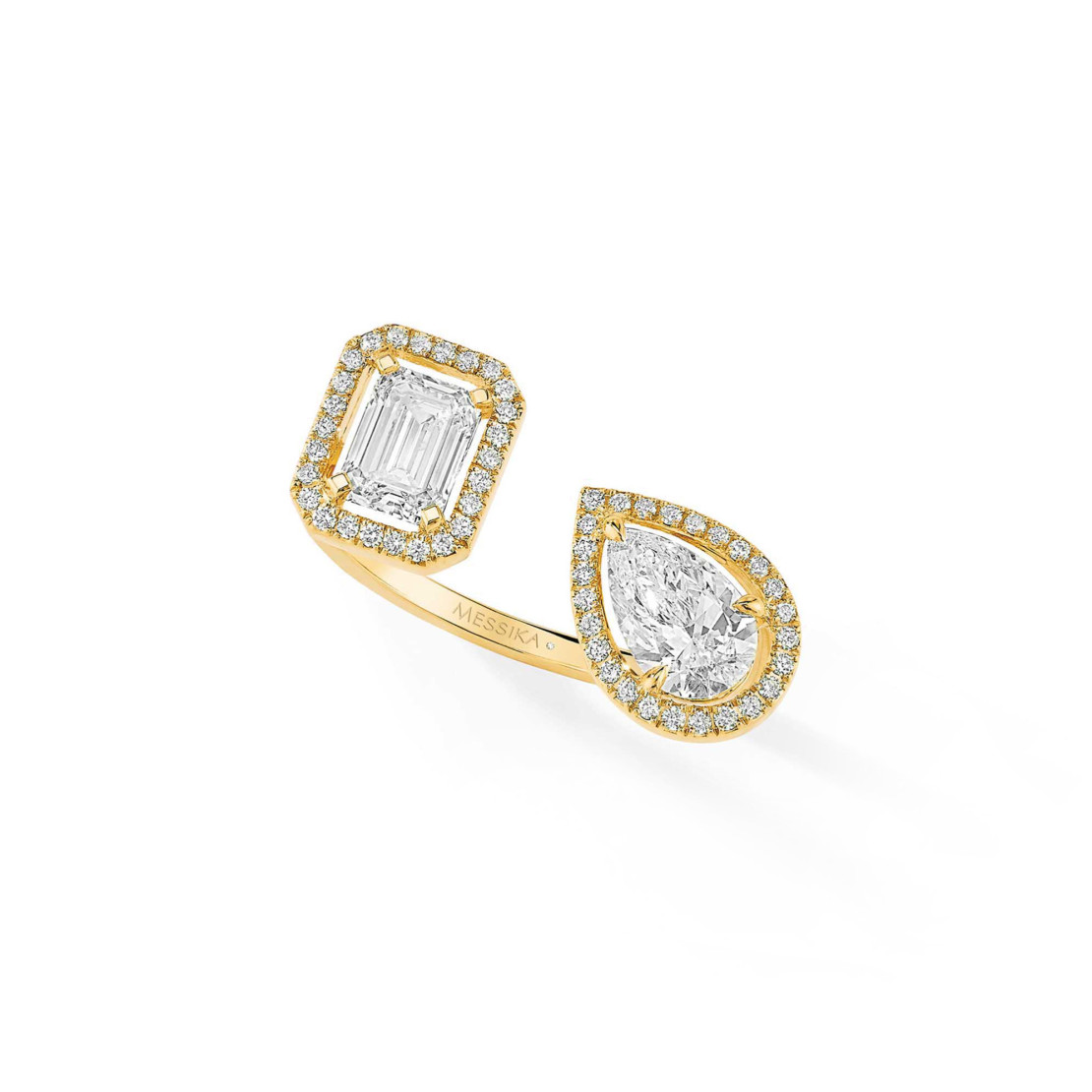 Ref. 06502-YG - Romantisches Tête à Tête - Die My Twin Kollektion vereint zwei kontrastierende Synergien, die ein verführerisches ‘Pas de Deux’ tanzen. Der geometrische und hypnotische Smaragdschliff und der sinnliche und atemberaubende Tropfenschliff bilden zusammen eine kontrastierende Ergänzung. My Twin vereint den architektonischen Smaragdschliff, einem Symbol für Stärke und Männlichkeit, mit dem sinnlichen Tropfenschliff, der die feminine Kurve widerspiegelt und beweist so, dass Gegensätze sich anziehen.
