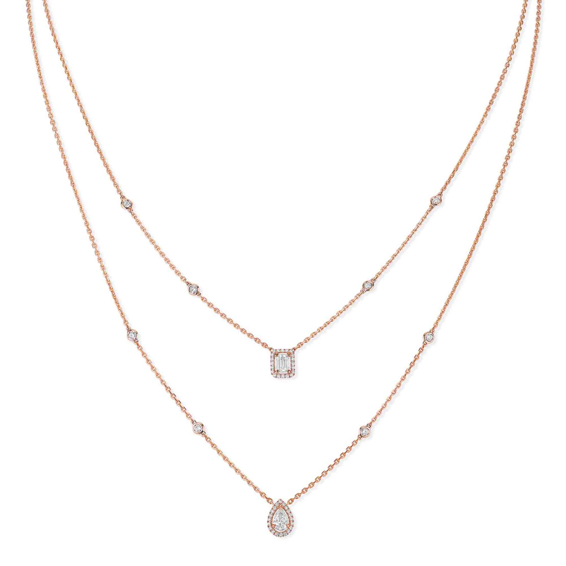 Ref. 06506-PG - Romantisches Tête à Tête - Die My Twin Kollektion vereint zwei kontrastierende Synergien, die ein verführerisches ‘Pas de Deux’ tanzen. Der geometrische und hypnotische Smaragdschliff und der sinnliche und atemberaubende Tropfenschliff bilden zusammen eine kontrastierende Ergänzung. My Twin vereint den architektonischen Smaragdschliff, einem Symbol für Stärke und Männlichkeit, mit dem sinnlichen Tropfenschliff, der die feminine Kurve widerspiegelt und beweist so, dass Gegensätze sich anziehen.