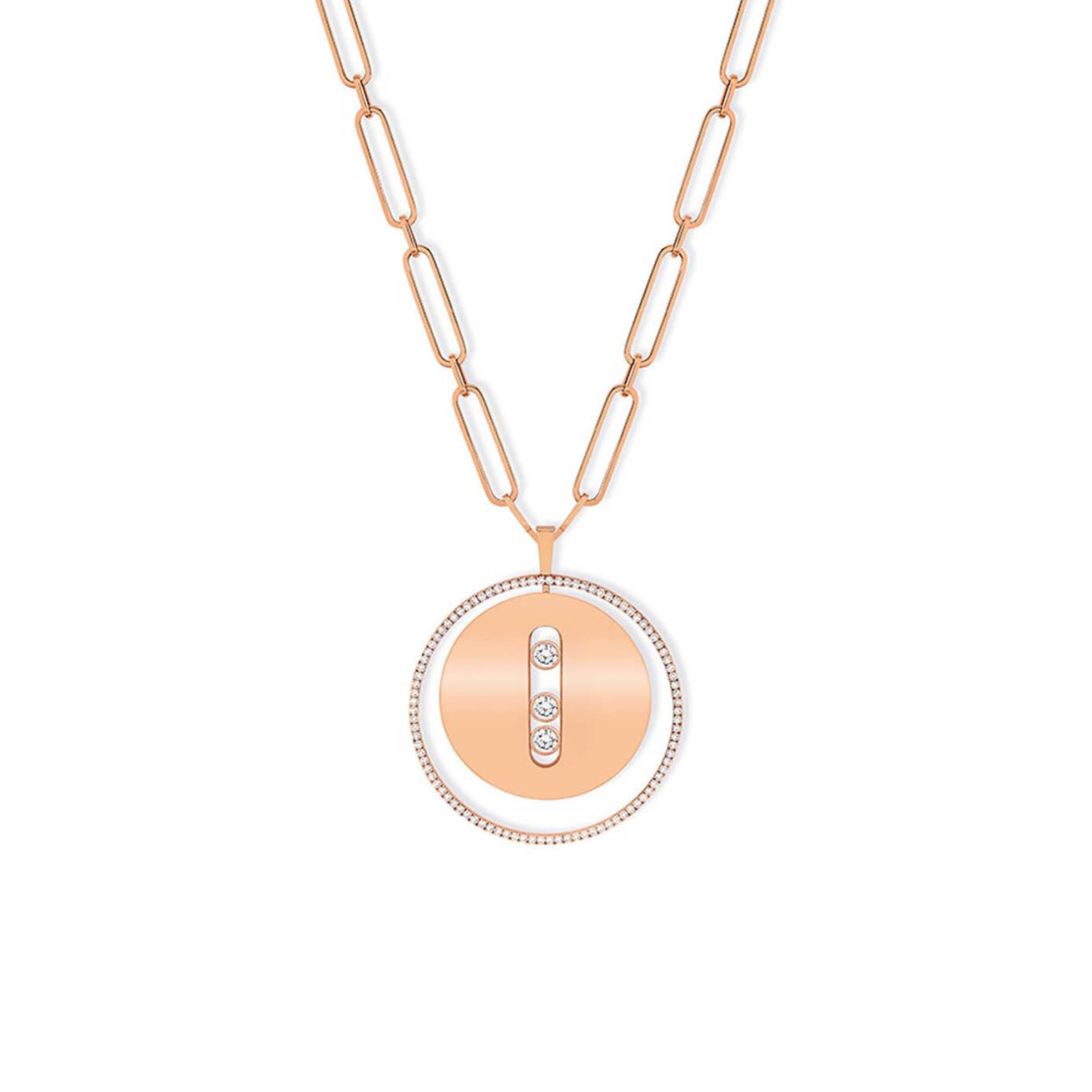 Ref. 10126-PG - Die neue Diamantschmuck-Kollektion Lucky Move von Messika ist ein wahrer Glücksbringer: Das charakteristische Merkmal von Lucky Move ist ein rundes Element im Amulett-Stil. Die neue Kollektion ist perfekt für alle Frauen, die auf der Suche nach modernem und dennoch zeitlosem Diamantschmuck sind.