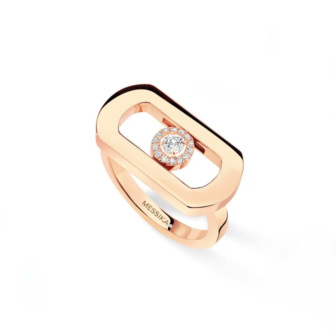 Ref. 12936-PG - Das Move verwegener denn je! Valérie Messika verleiht dem Symbol der Maison eine neue Dimension: noch selbstbewusster, noch strukturierter, noch grafischer! Das Motiv gewinnt mit XXL-Proportionen und einem beweglichen Diamanten, der zum ersten Mal von der für Messika charakteristischen mit Diamanten ausgefassten Fläche umgeben ist, an Ausdrucksstärke.