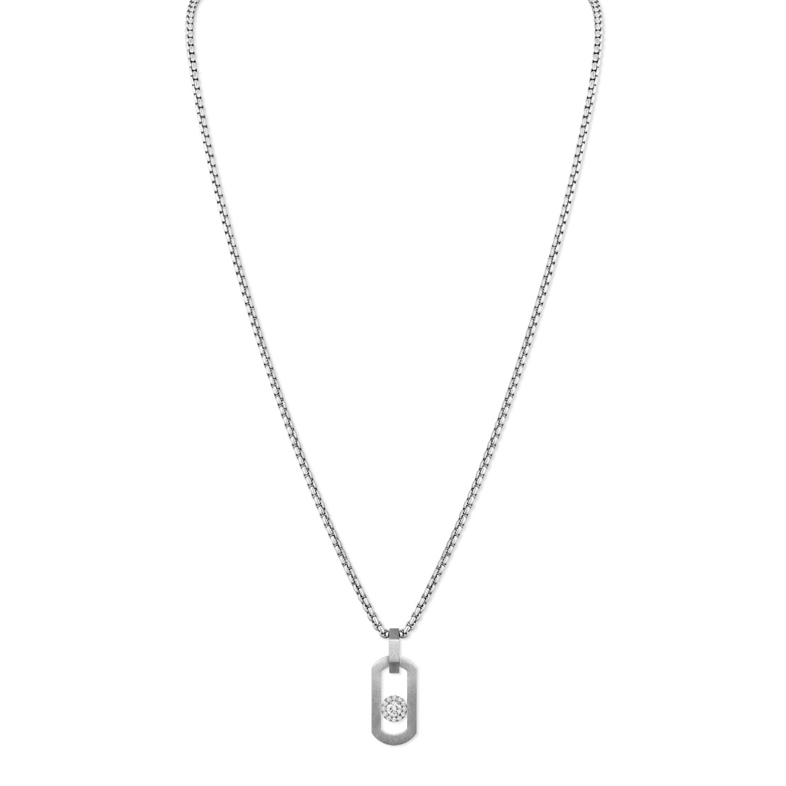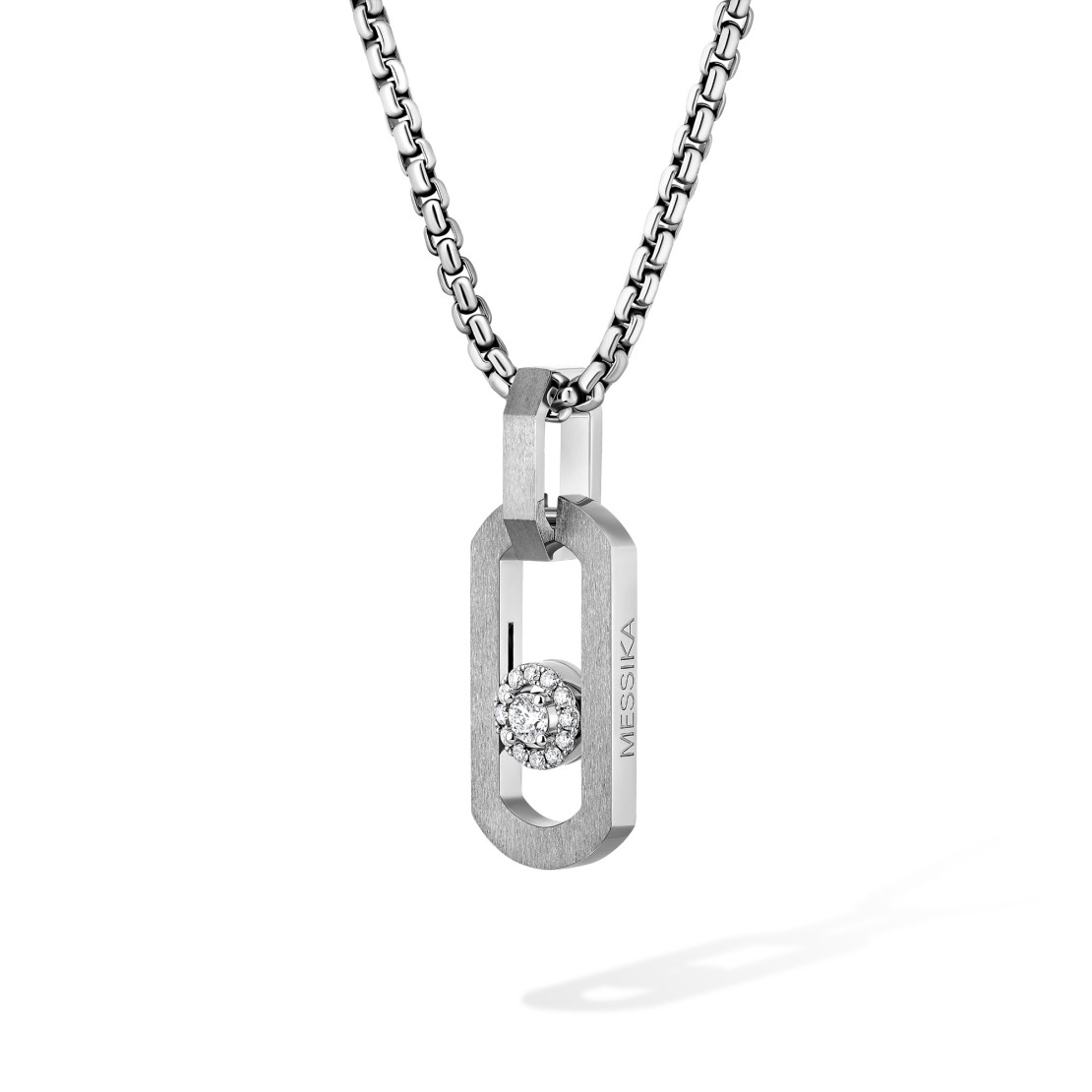 Ref. 13679-TN - So Move schmückt sich mit Titan und zeigt sich in seiner maskulinen Version. Valérie Messika entwarf ein stilvolles Schmuckstück aus naturfarbenem Titan und Diamanten. Das Move-Kultmotiv verwandelt sich in einen XXL-Anhänger im Urban-Chic. Diese Halskette für Herren schmückt sich mit einem beweglichen Diamanten in der Mitte, der durch einen mit Diamanten besetzten Halo noch mehr strahlt. Die Stärke des gebürsteten Metalls steht im Gegensatz zu den schillernden Steinen und erschafft ein Schmuckstück, das sowohl roh als auch zeitgenössisch ist. Eine innovative und außergewöhnliche Diamantkette: Der So Move Anhänger aus Titan ist das ultimative Accessoire für alle, die mit den Konventionen brechen möchten.