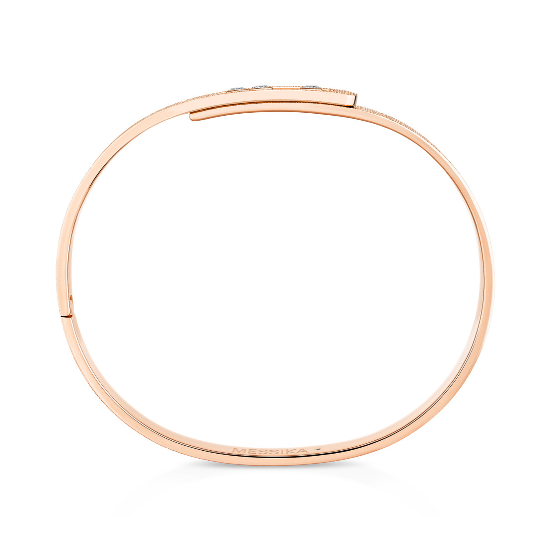 Ref. 14481-PG - Der Move Noa Armreif, ein unverwechselbares Schmuckstück von Messika, erfindet sich in einem neuartigen Dialog zwischen ziseliertem Roségold und Diamanten neu. Durch die präzise Handarbeit fängt jede Ziselierung das Licht ein und reflektiert es für einen intensiven Effekt. Das Roségold zeigt sich hier in einem subtilen Vintage-Akzent. Das Spiel mit Materie und Relief in Verbindung mit dem Rhythmus der beweglichen Diamanten hüllt das Handgelenk in einen ausdrucksstarken und selbstbewussten Stil, ohne jemals zu übertreiben. Ein unverwechselbares Diamantarmband für Damen und Herren, das allein oder in Kombination mit anderen Messika Armreifen aus Gold und Diamanten getragen werden kann.