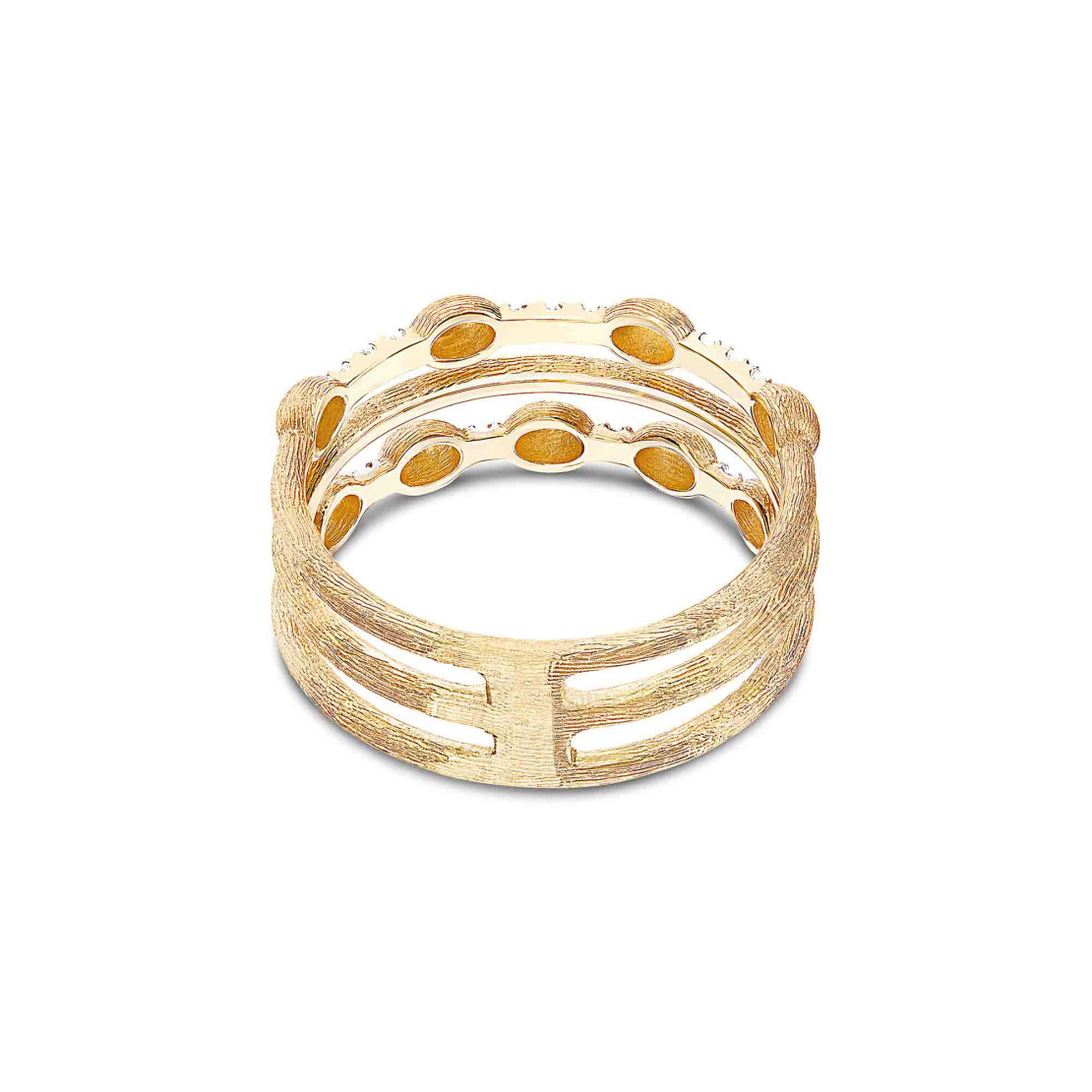 Ref. AS22-583 - Eleganter Ring aus 18kt Gelbgold und Diamanten. Die goldene und unregelmäßige Oberfläche, vollständig durch unsere Goldschmiede von Hand mit einem speziellen Stichel graviert, bildet zusammen mit den Diamanten ein außerordentliches Lichtspiel, das zu einem eleganten Look genauso gut passt, wie zu einem legeren.