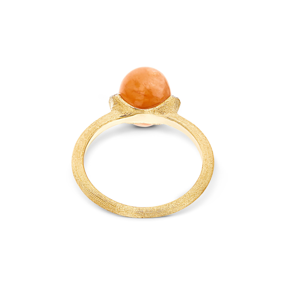 Ref. AS5-603 - Der faszinierende orange Aventurin trifft in diesem Ring der Kollektion Terre Lontane auf 18kt Gold und Brillanten, inspiriert von Petra, der herrlichen archäologischen Stätte, die in der südwestlichen Wüste Jordaniens liegt. Ein Juwel von zeitlosem Charme, konzipiert als kostbarer Talisman, den man immer bei sich trägt.