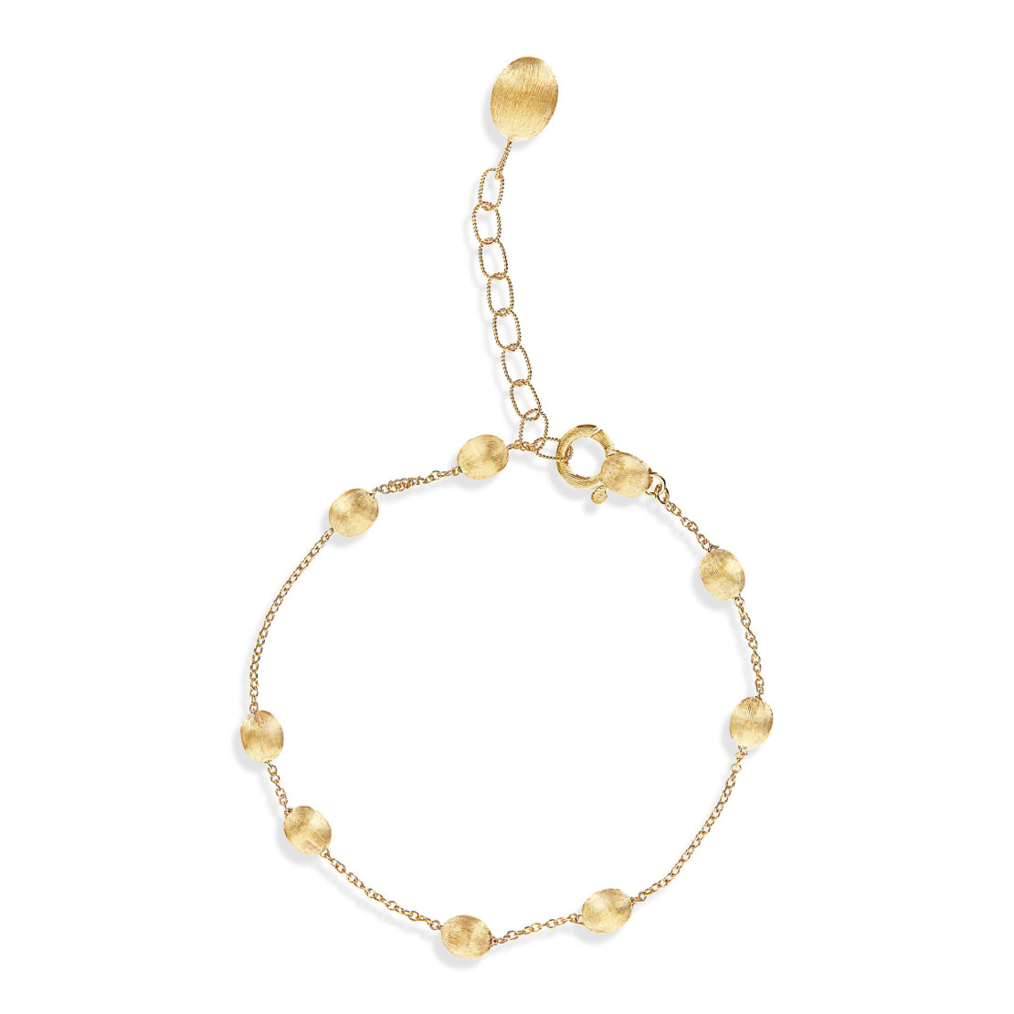 Ref. BN1-583 - Ein zartes Band mit Kugeln aus 18kt Gold, Stück für Stück von Hand graviert. Eine Poesie aus Licht, die das Handgelenk umfängt, perfekt für jeden Look.