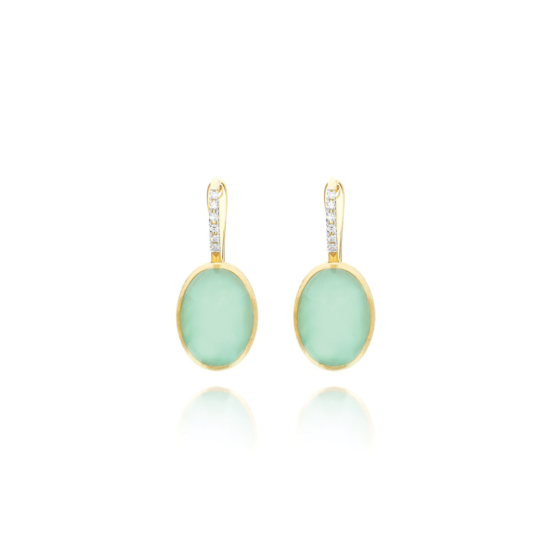 Ref. OS8-609 - Die lebendigen Farbtöne des Latte e menta (Milch mit Minze), dem bekannten italienischen Getränk, das in den 70er Jahren entstanden ist, erneuern die ikonischen Nanis Ciliegine im Überschwang , und erwecken diese Ohrringe der Kollektion Boules zum Leben, entstanden aus der Begegnung des 18kt Goldes mit einer Dublette aus Bergkristall und Jadeit. Tradition und Moderne, Nostalgie nach einer vergangenen Epoche, und der Wunsch, auf die Zukunft zuzulaufen, vereinen sich so in einem unverwechselbaren Juwel. Unser Ratschlag? Spiele mit verschiedenen Farben und Modellen der Ciliegine Reihe und kreiere deine Lieblings-Kombination.