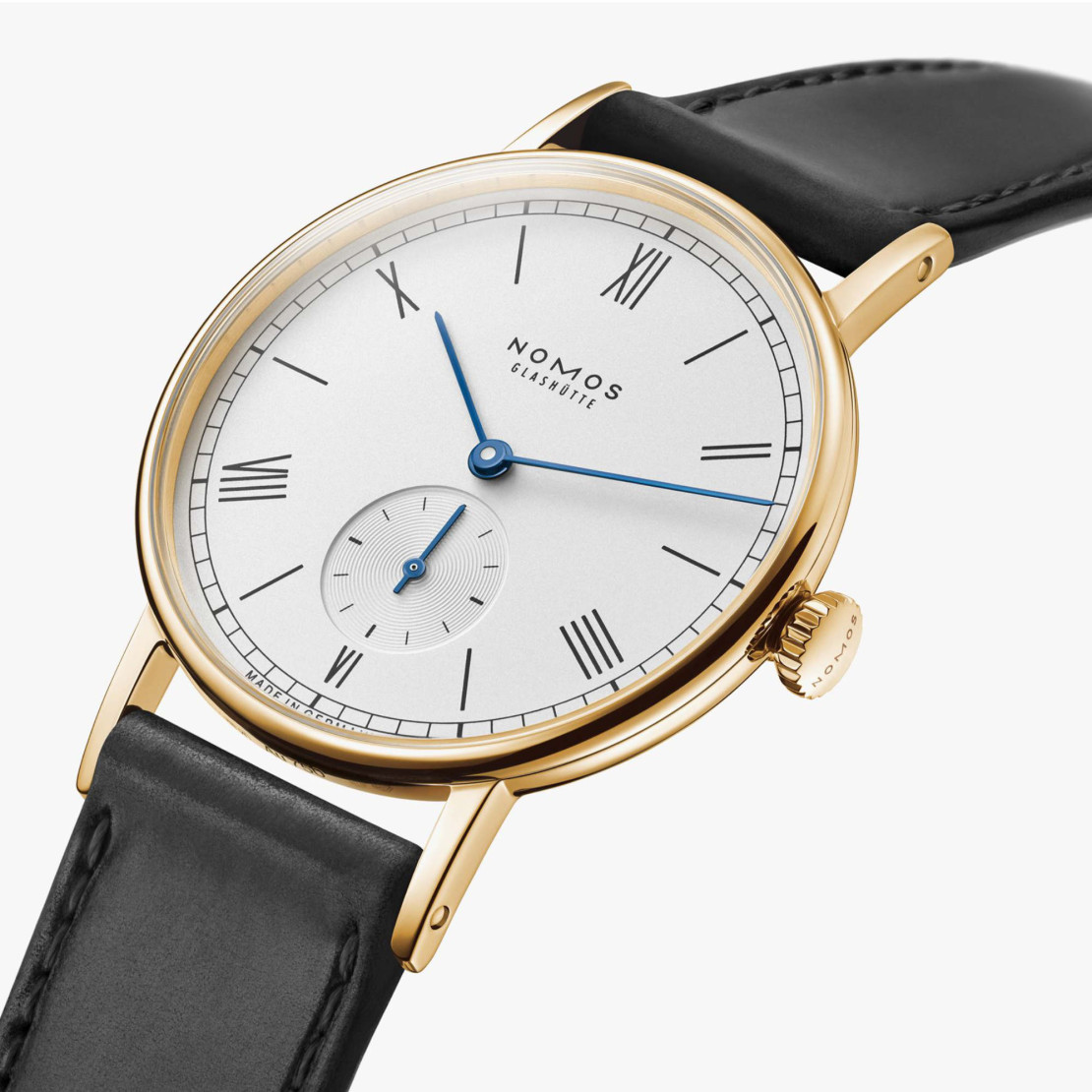 Ref. 211 - Ludwig Gold von NOMOS Glashütte macht mit dem 18-karätigen Massivgoldgehäuse und den klassisch-eleganten römischen Ziffern Tradition erlebbar. Das Handaufzugskaliber von NOMOS garantiert stilvolle Präzision, während das Armband aus Horween Genuine Shell Cordovan das Gehäuse harmonisch ergänzt.