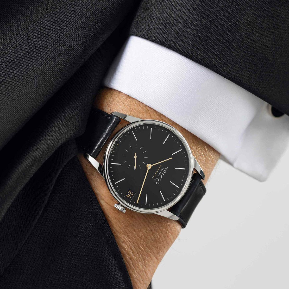 Datumsfenster bei 3 Uhr, goldenes Datum auf schwarzem Grund