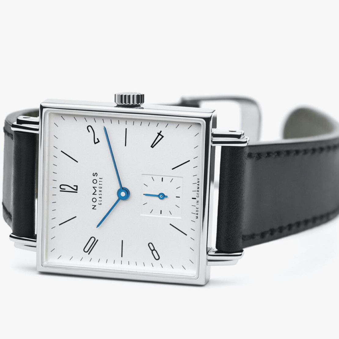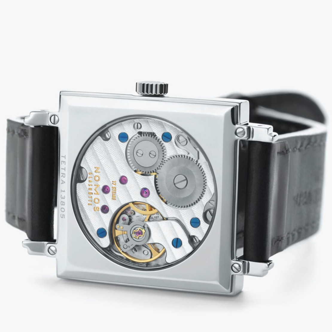 Ref. 406 - Tetra ist eine Uhr im Quadrat – und was für eine! Sie zeigt Ecken, Kanten und Persönlichkeit. Auf dem weiß versilberten Zifferblatt drehen temperaturgebläute Zeiger auch im Eckigen ihre Runden. Keine Brillanten, kein Perlmutt, kein Schnickschnack, einfach Ticktack. Letzteres fabriziert das hauseigene Manufakturkaliber Alpha, zuverlässig wie immer.
