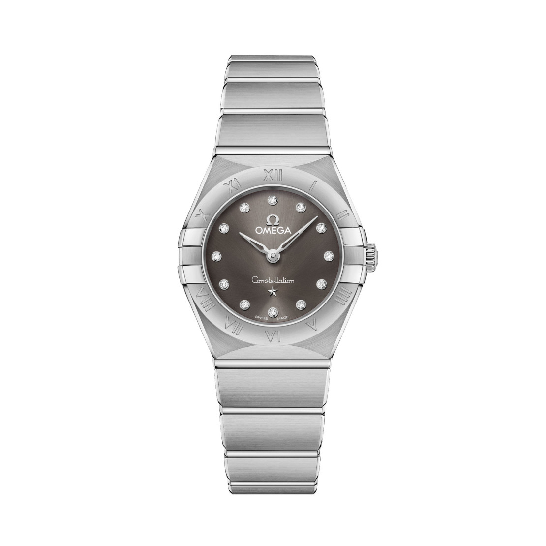 Die Zeiger, das OMEGA Logo, der Constellation-Stern und die Diamantfassungen sind aus 18 K Weißgold