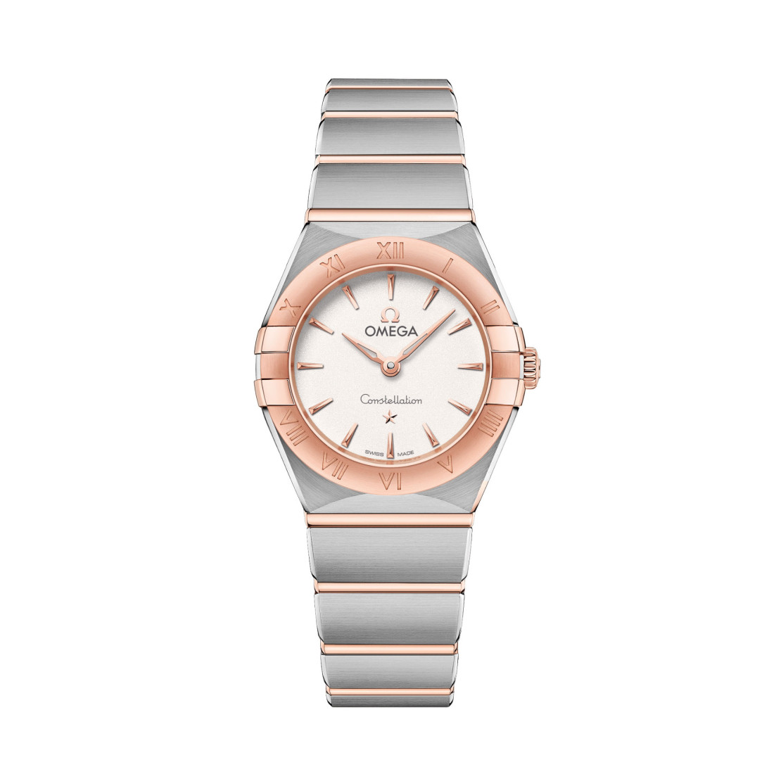 Die Zeiger, das OMEGA Logo, der Constellation-Stern und die Indizes sind ebenfalls aus 18 K Sedna™-Gold
