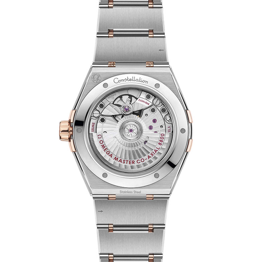 Zeiger, das OMEGA Logo, der Constellation-Stern und die Indizes sind allesamt aus 18 K Sedna™-Gold