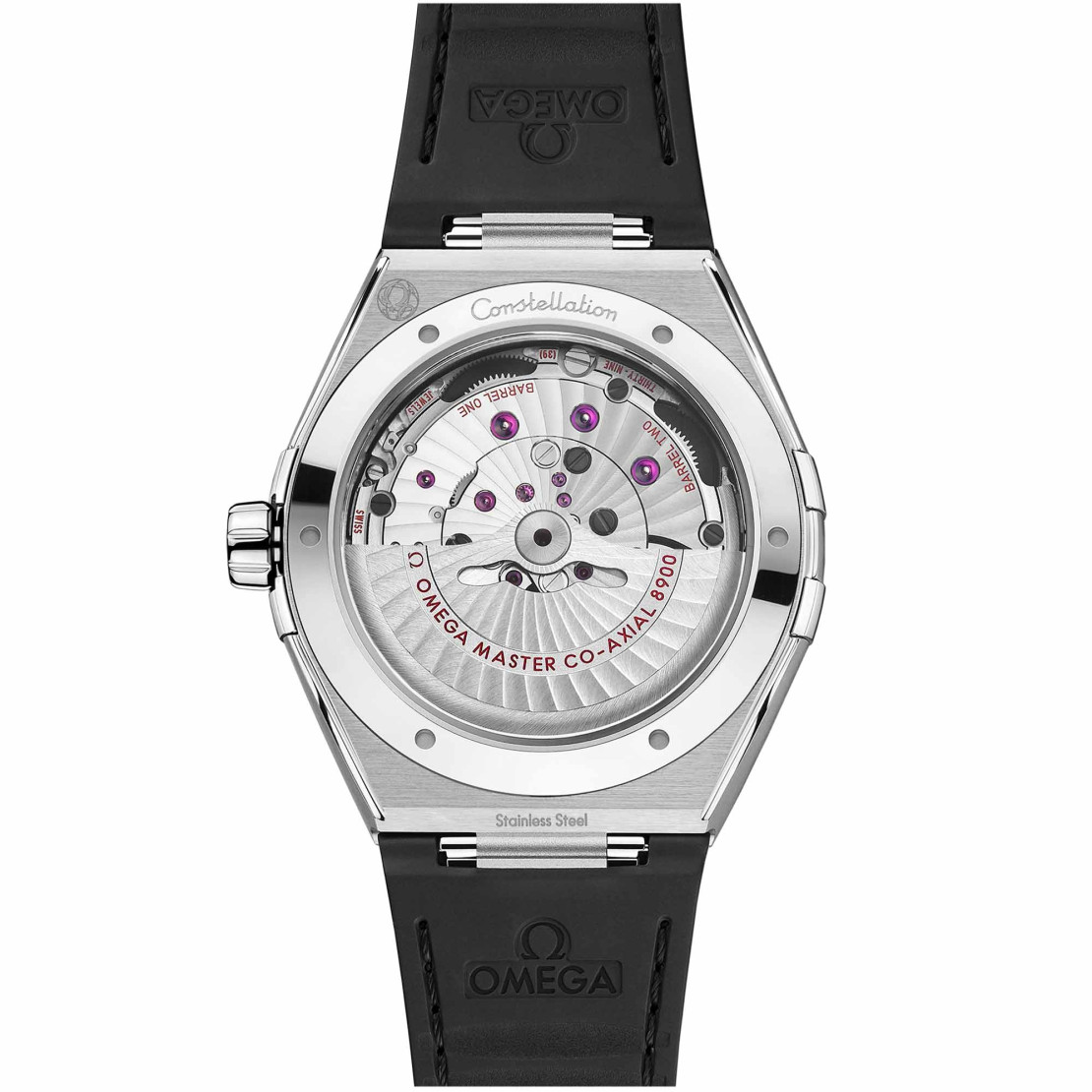 Ref. 131.33.41.21.06.001 - Das spektakuläre und langlebige Design der OMEGA Constellation zeichnet sich durch die berühmten Halbmonde sowie die „Krappen“ an der Gehäuseseite aus. Dieses 41 mm große Modell aus Edelstahl verfügt über eine mit römischen Ziffern aus Liquidmetal™ versehene, polierte schwarze Keramiklünette, ein rhodiumgraues Zifferblatt mit eingeprägtem seidenähnlichem Muster und ein Datumsfenster bei 6 Uhr. Die Zeiger, das OMEGA Logo, der Constellation-Stern und die facettierten Indizes sind allesamt geschwärzt. Der Zeitmesser wird von einem schwarzen Lederarmband mit Kautschukunterfütterung am Handgelenk gehalten und von dem OMEGA Co-Axial Master Chronometer Kaliber 8900 angetrieben, das durch das gewölbte, kratzresistente Saphirglas sichtbar ist.