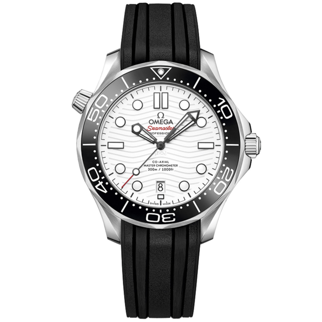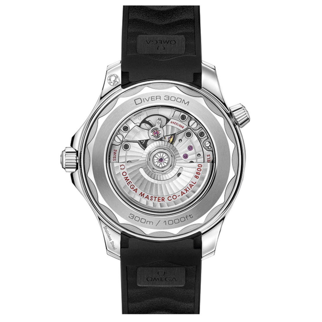 Ref. 210.32.42.20.04.001 - Seit 1993 hat die Seamaster Professional Diver 300M eine begeisterte Anhängerschaft. Die moderne Kollektion von heute hat das berühmte maritime Erbe aufgegriffen und mit OMEGAs innovativen Ideen und bestem Design bereichert. - Dieses 42-mm-Modell aus Edelstahl besticht durch eine schwarze Keramiklünette mit einer Tauchskala aus weißem Email. Das Zifferblatt aus polierter weißer Keramik ist mit lasergravierten Wellen und einem roten „Seamaster“-Schriftzug verziert. - Die polierten, geschwärzten und skelettierten Stunden- und Minutenzeiger sind mit weißer Super-LumiNova gefüllt. Der Sekundenzeiger endet in einer rot lackierten Spitze. - Angetrieben wird die Uhr mit integriertem schwarzem Kautschukarmband vom OMEGA Master Chronometer Kaliber 8800, das durch das Saphirglas des Gehäusebodens mit gewelltem Rand bewundert werden kann.