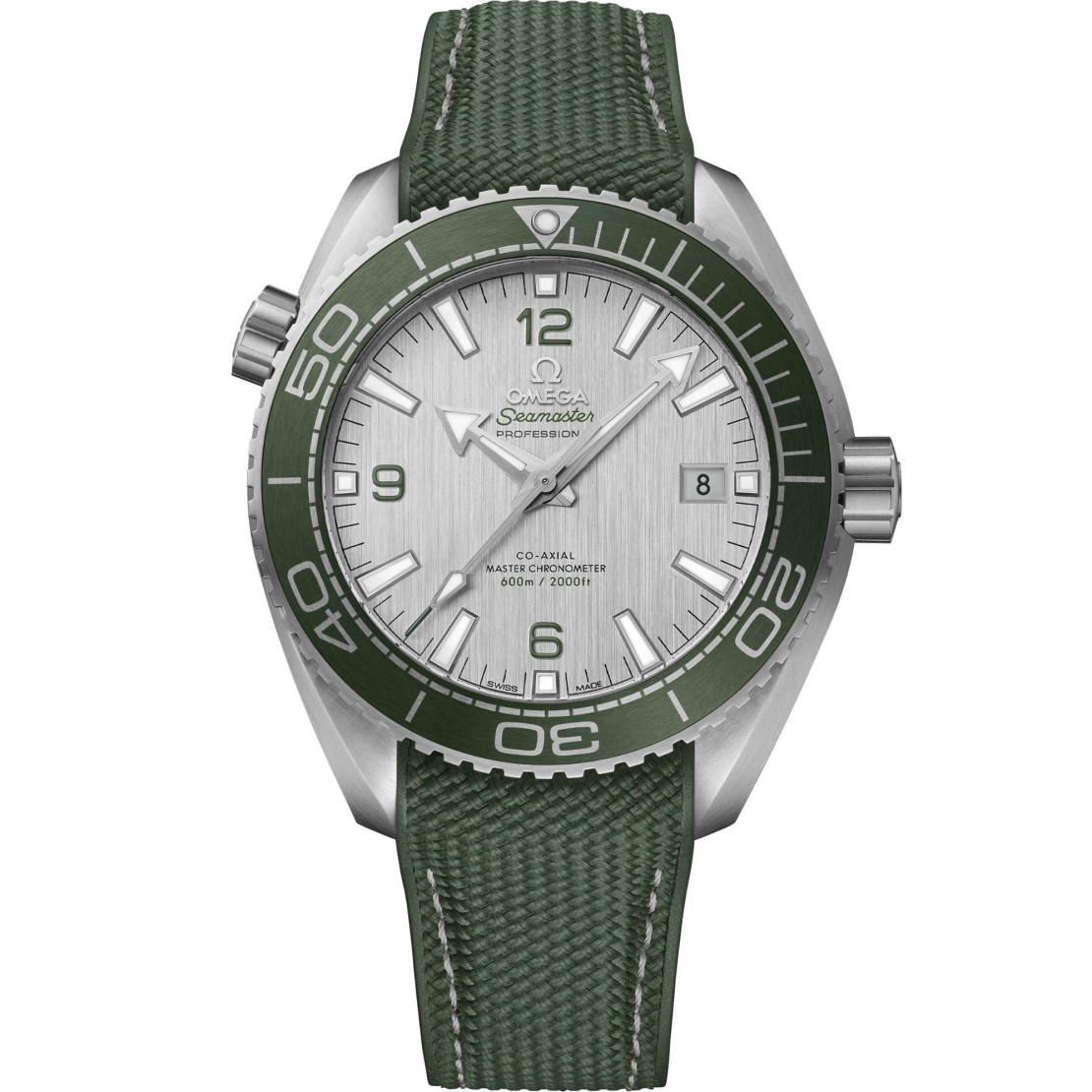 Diese Seamaster Planet Ocean, die vom Co-Axial Master Chronometer Kaliber 8900 angetrieben wird, ist mit einem integrierten grünen Kautschukarmband mit strukturiertem Muster und hellgrüner Naht ausgestattet. Den NAIAD LOCK Gehäuseboden ziert ein metallisiertes Seepferdchen auf dem Saphirglas.