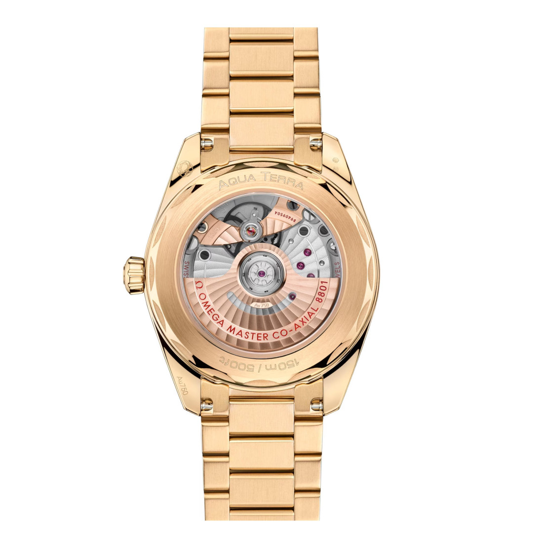 Die Uhr mit passendem Armband aus 18 K Moonshine™-Gold wird von dem OMEGA Co-Axial Master Chronometer Kaliber 8801 angetrieben, das von dem Eidgenössischen Institut für Metrologie (METAS) gemäß den höchsten Branchenstandards zertifiziert wurde.