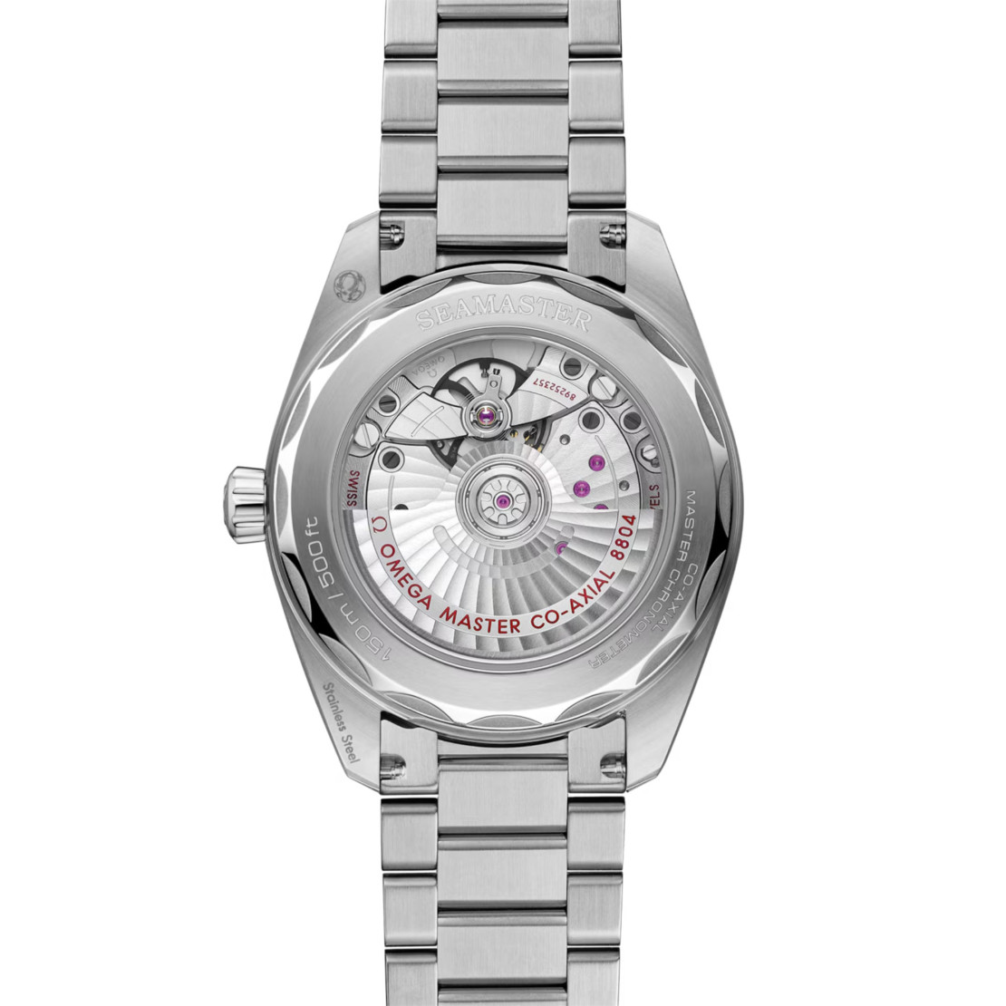 Auch setzt die Uhr das antimagnetische Erbe der Railmaster fort – dank des Co-Axial Master Chronometer Kalibers 8804. Das Uhrwerk ist bis zu 15.000 Gauß magnetresistent und kann durch das transparente Saphirglas auf dem Gehäuseboden bewundert werden.