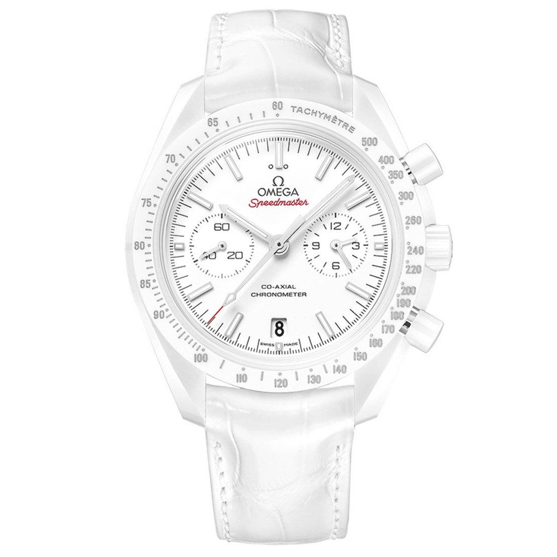 Weißes Keramikzifferblatt mit applizierten Indizes aus 18k-Weißgold