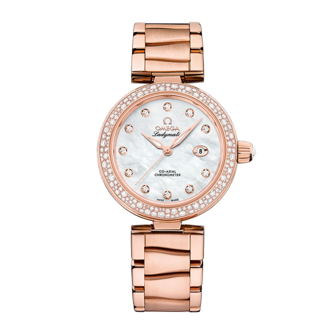 Weißes Perlmuttzifferblatt mit 11 Diamantindizes