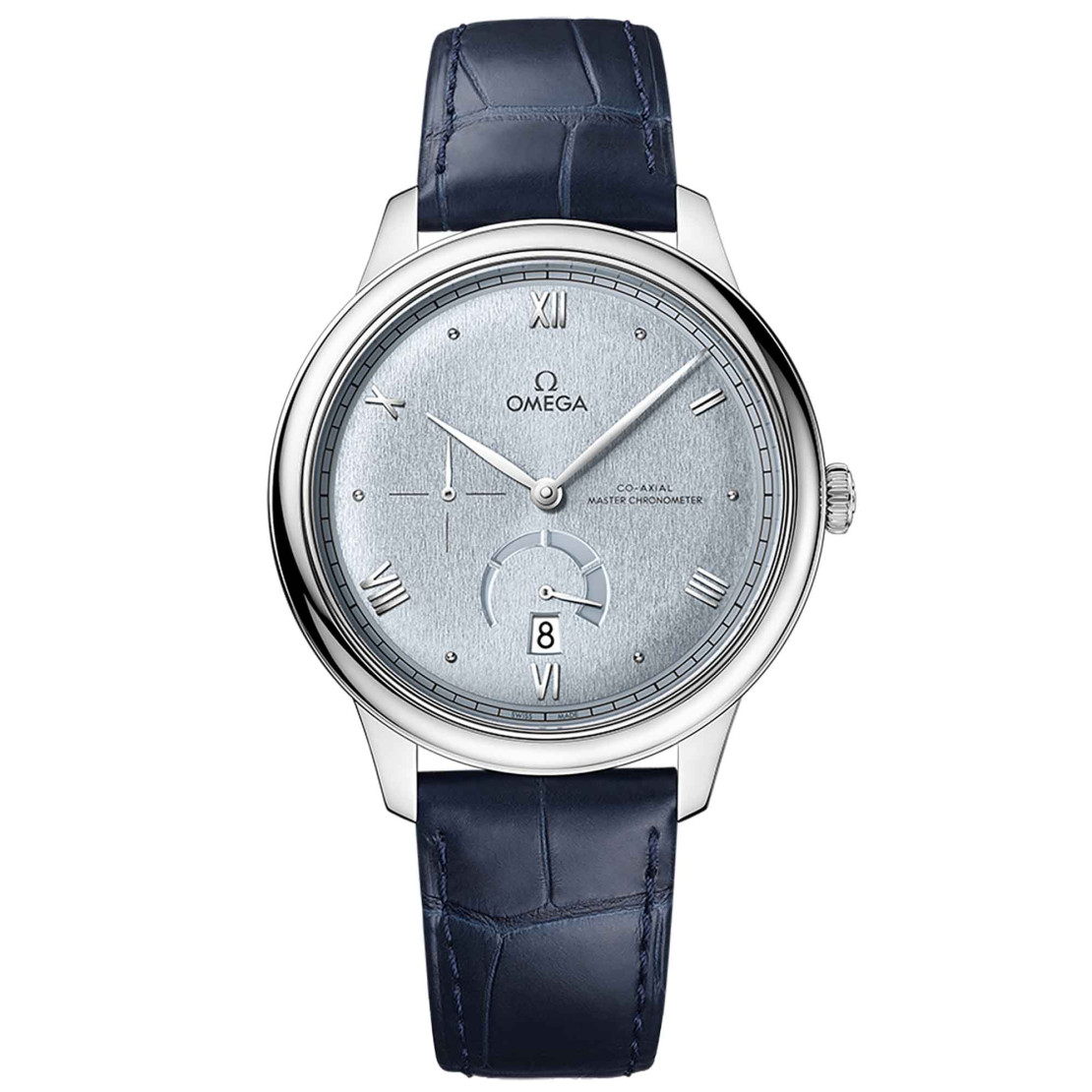 Ref. 434.13.41.21.03.001 - Die OMEGA De Ville Prestige ist seit 1994 eine zeitlose Kollektion. Jetzt erscheint die dritte Generation der Ikone. Mit einer Auswahl an Mustern, Veredelungen und Farben repräsentieren diese Zeitmesser klassisches Design sowie Eleganz und passen sich verschiedensten Lifestyles und Persönlichkeiten an. Dieses 41-mm-Modell aus Edelstahl besitzt ein gewölbtes Zifferblatt mit hellblauer PVD-Beschichtung, Sonnenschliff und einer variierenden vertikalen Prägung. Die Anzeige zeichnet sich durch rhodinierte Zeiger sowie alternierende römische Ziffern und Cabochon-Indizes aus. Die 270°-Gangreserveanzeige befindet sich bei 6 Uhr. Sie wird durch vier sektorielle Ausschnitte in Halbmondform und eine applizierte Unterplatte mit dezent kontrastierender Veredelung im gleichen Farbton dargestellt. Der schlichte Look des Zeitmessers wird durch ein Datumsfenster bei 6 Uhr, ein Hilfszifferblatt für die Sekunden bei 9 Uhr und eine äußere „Eisenbahn“-Minuterie ergänzt. Diese als Master Chronometer zertifizierte Uhr wird von einem dunkelblauen Lederarmband am Handgelenk gehalten und von dem OMEGA Master Co-Axial Kaliber 8810 angetrieben, das durch den kratzfesten Saphirglasboden bewundert werden kann.