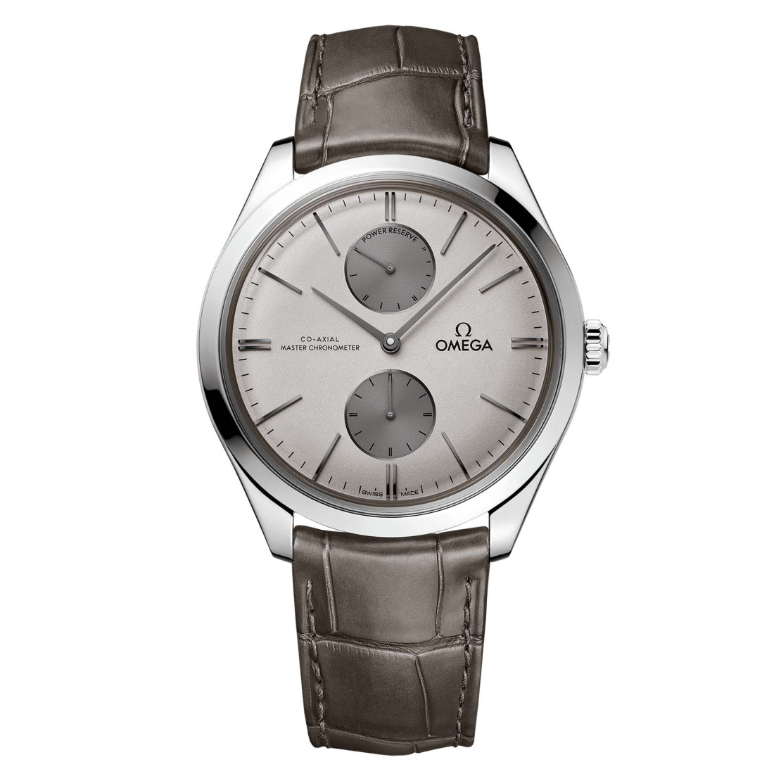 Ref. 435.13.40.22.06.001 - Die sich durch ein flaches und elegantes Gehäuse auszeichnende Trésor-Linie wurde von OMEGA erstmals im Jahr 1949 lanciert – mit dem legendären 30-mm-Kaliber im Inneren. Mehr als ein halbes Jahrhundert später beeindruckt sie noch immer mit einem der fortschrittlichsten mechanischen Uhrwerke der heutigen Zeit. Dieses Modell besitzt ein poliertes 40-mm-Gehäuse aus Edelstahl, das von einem grauen Lederarmband am Handgelenk gehalten wird. Das gewölbte, zweifarbig silberne Zifferblatt ist mit einer Gangreserveanzeige bei 12 Uhr, einer kleinen Sekunde bei 6 Uhr sowie Zeigern und gewölbten Indizes aus 18 K Weißgold versehen. Angetrieben wird diese De Ville Trésor von dem OMEGA Master Co-Axial Kaliber 8934. Sie garantiert in Sachen Präzision, chronometrischer Leistung und magnetischer Widerstandskraft den höchsten Standard, den die Industrie zu bieten hat.