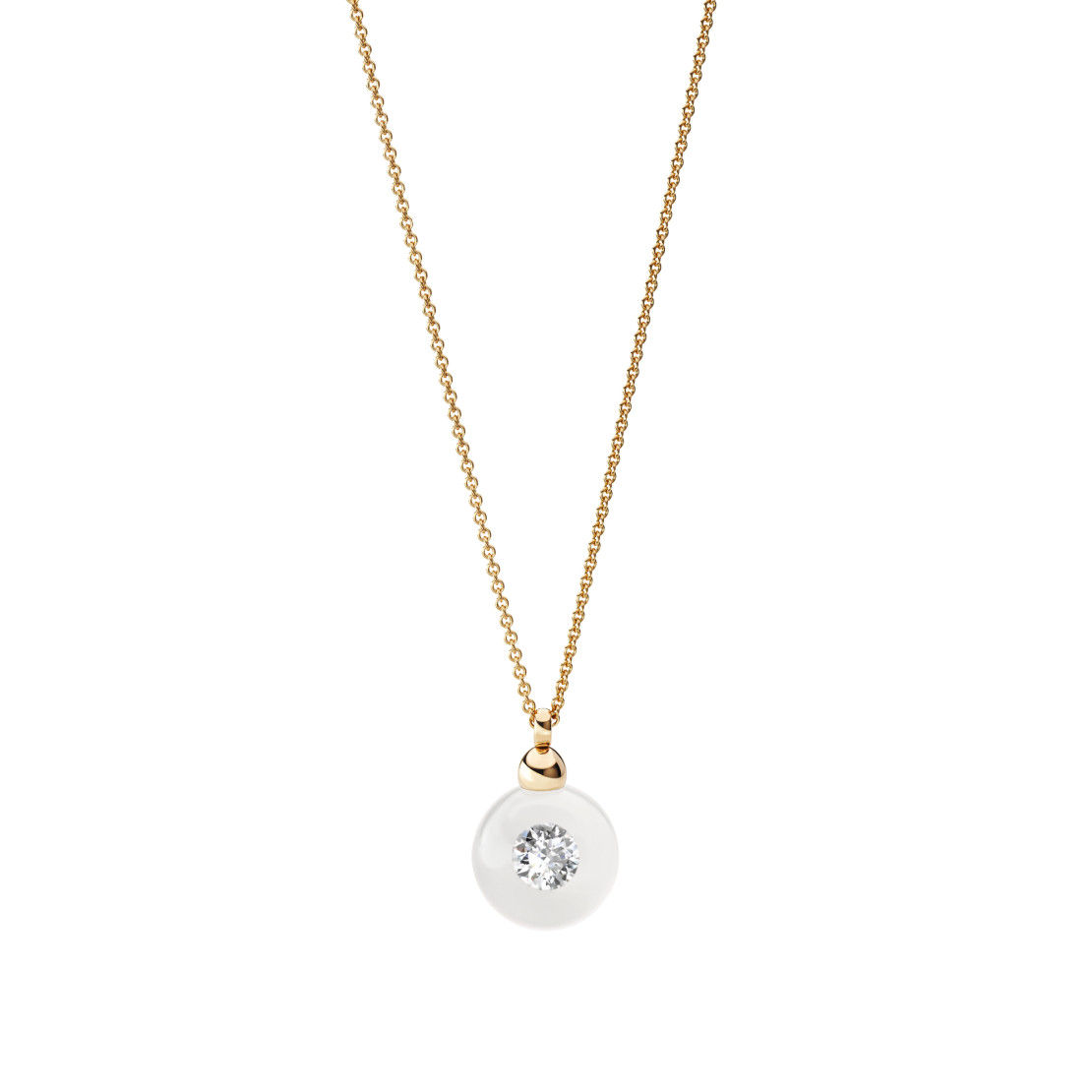 Ref. DH567-RG-GW - Kann ein Brillant schweben? Bei Schmuckwerk schon! Im Anhänger Glasklar schwebt ein Brillant in einer Kugel aus Glas. Ein einmaliges handwerkliches Kunststück. Mit viel Fingerspitzengefühl wird die Glaskugel von Hand geformt, um den Brillanten möglichst perfekt zu umschließen. Eine neue Art der Fassung, verblüffend und wunderschön. Und das Beste: Das Glas wirkt wie eine Lupe und lässt den Stein dreimal so groß aussehen!