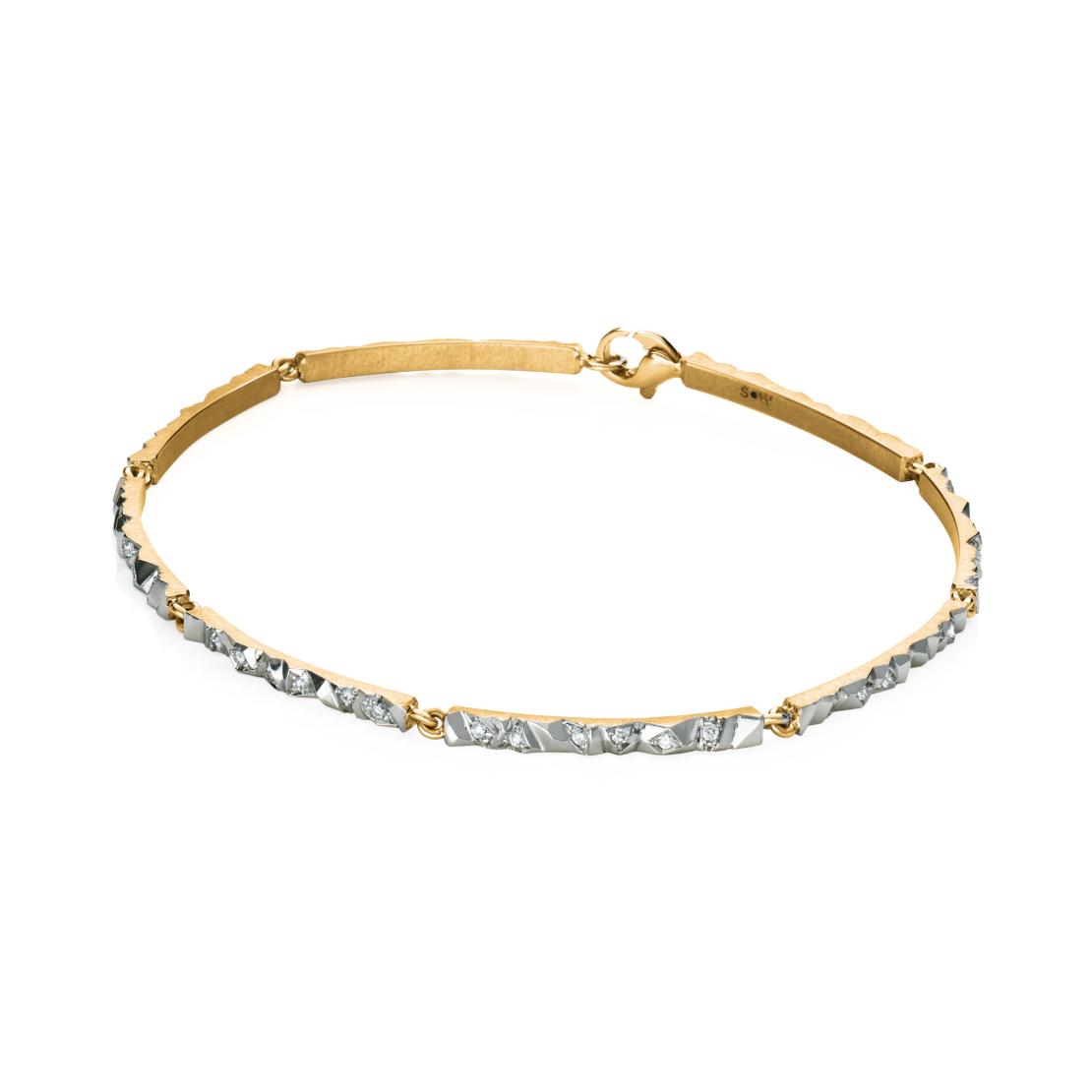 Ref. GA507-GG - Das passende Armband zu Ihrem ALPEN-Ring: Fein, elegant und beweglich. Mit charakteristischen Alpenelementen und 48 Brillanten, die um die Wette funkeln. Tragen Sie ein Armband alleine. Oder kombinieren Sie zwei Bänder nebeneinander: ein zartes und ein stärkeres. Sie werden es lieben und jeden Tag tragen, denn es gehört in der Sekunde zu Ihnen, in der Sie es anlegen.