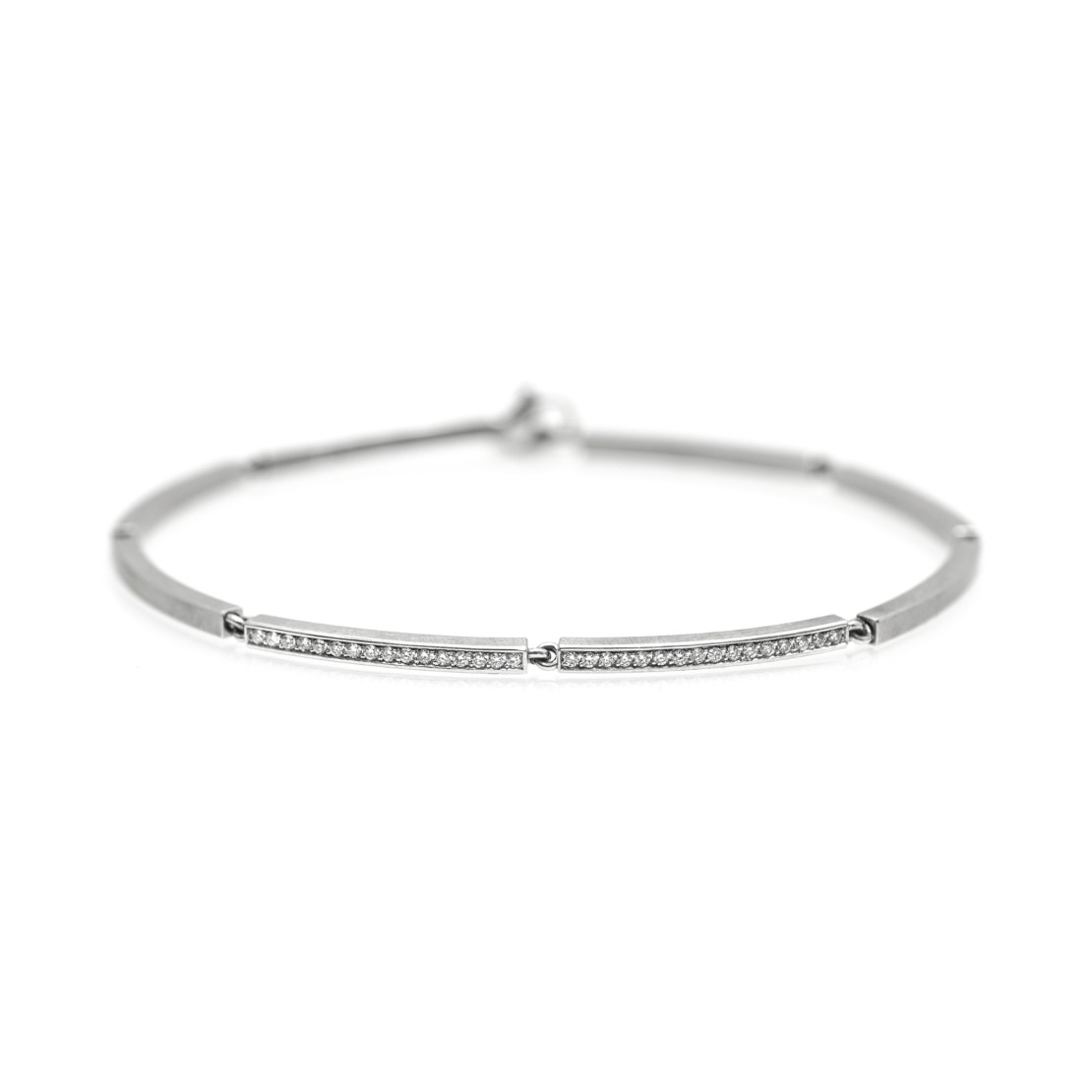 Ref. SA106-WG - Das passende Armband zu Ihrem Kettenring: Fein, elegant und beweglich. Mit zwei Brillantelementen oder Komplett ausgefasst. Tragen Sie zwei Bänder nebeneinander: ein zartes und ein stärkeres. Egal, für welche Varianten Sie sich entscheiden: Sie werden es lieben und jeden Tag tragen, denn es gehört in der Sekunde zu Ihnen, in der Sie es anlegen.