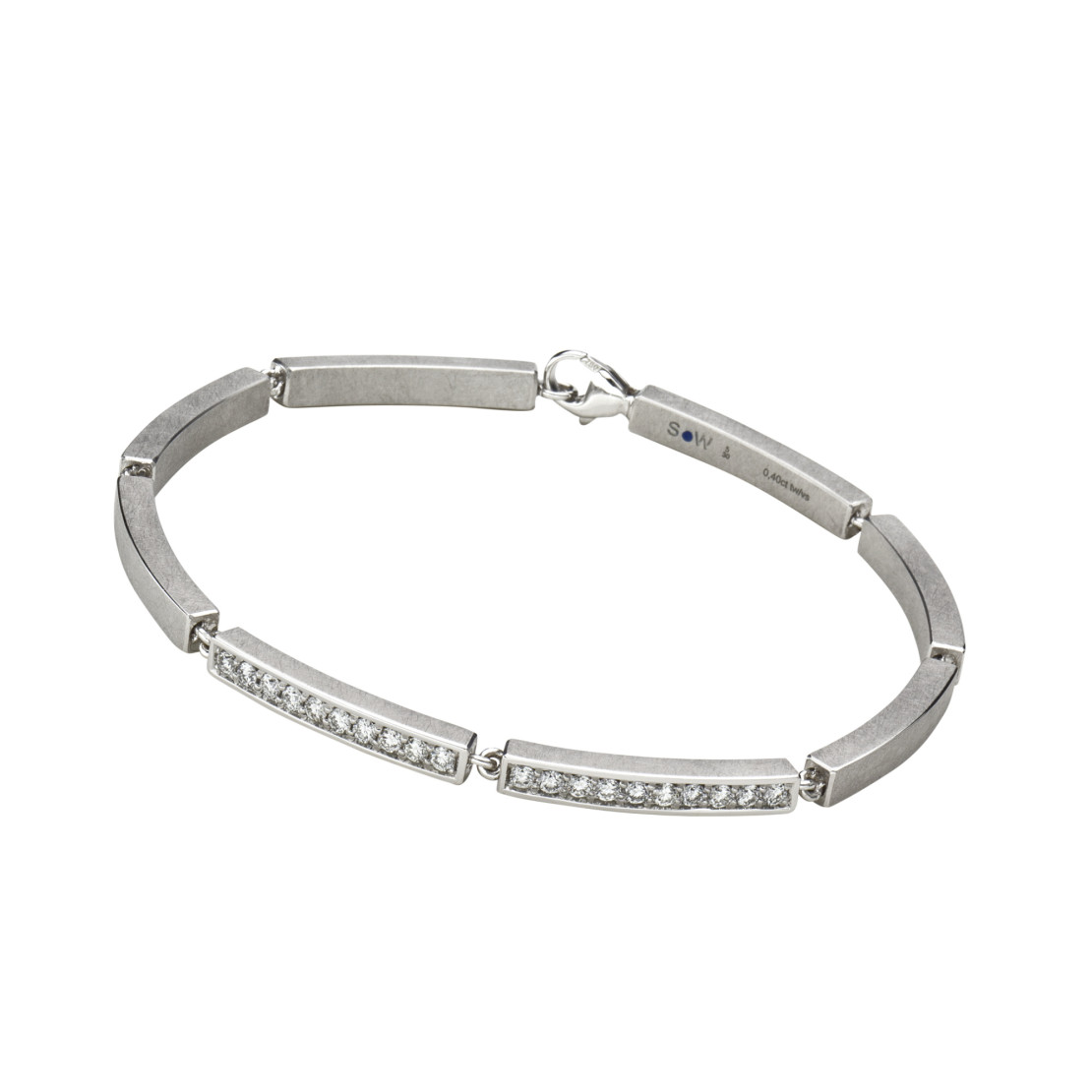 Ref. SA126-WG - Das passende Armband zu Ihrem Kettenring: Fein, elegant und beweglich. Mit zwei Brillantelementen oder Komplett ausgefasst. Tragen Sie zwei Bänder nebeneinander: ein zartes und ein stärkeres. Egal, für welche Varianten Sie sich entscheiden: Sie werden es lieben und jeden Tag tragen, denn es gehört in der Sekunde zu Ihnen, in der Sie es anlegen.