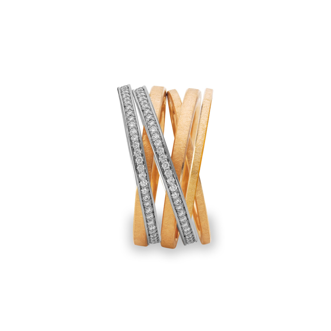 Ref. SR866-RG-PT - Bis jetzt gab es den Kettenring entweder mit vielen schmalen oder wenigen breiten Ringen. Der neue& Kettenring besteht aus unterschiedlichen Breiten. Alle Kettenringe werden jetzt auch in Bicolor für Sie gefertigt.