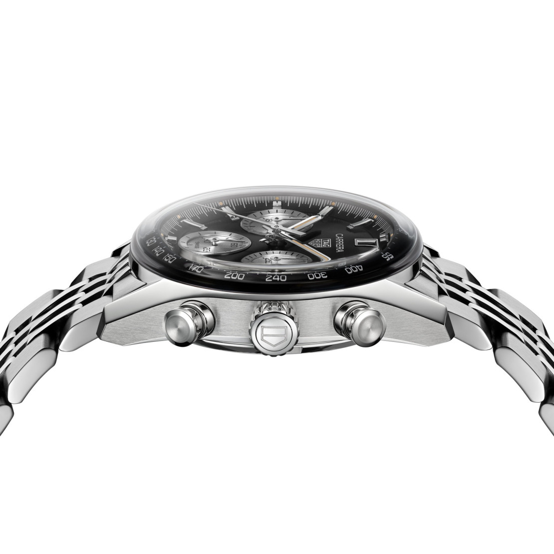 Ref. CBS2210.BA0048 - Diese prestigeträchtige schwarze 39-mm-Version des TAG Heuer Carrera Chronograph ist eine Neuinterpretation des Modells „Reverse Panda“ 2447 NS, die den Geist der Kollektion mit einem modernen Touch versieht. Mit seinem ikonischen „Beads of Rice“-Armband, das Vintage-Inspiration und moderne Handwerkskunst vereint, stellt dieser Zeitmesser entschlossen seine Kühnheit unter Beweis.