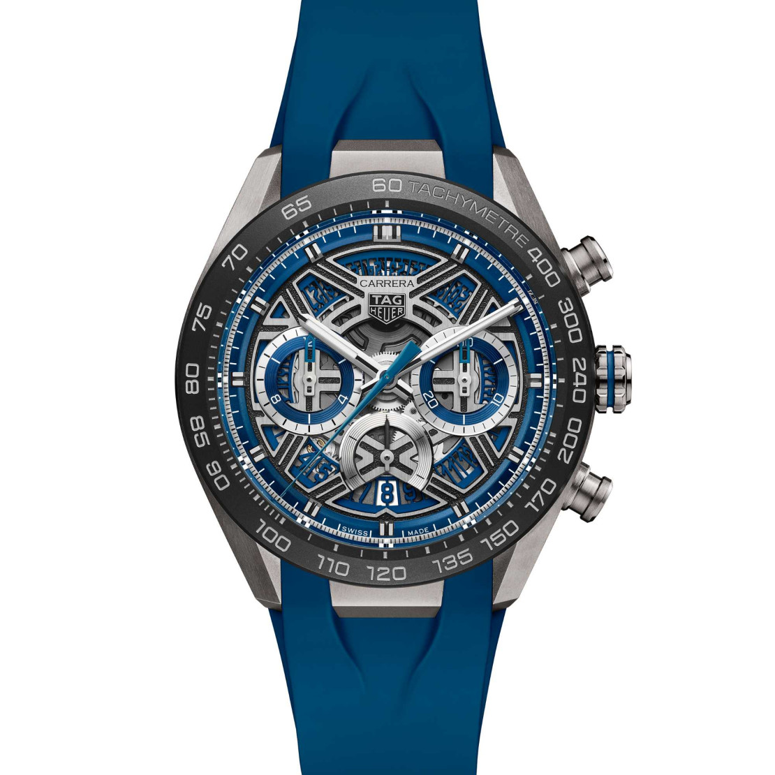 Ref. CBU2081.FT6274 - Mit dem TAG Heuer Carrera Chronograph, der den Nervenkitzel des Motorsports verkörpert, richten Sie den Fokus auf Ihr Handgelenk. Mit seinem kühnen Design und den blauen Akzenten fängt das skelettierte Zifferblatt dieses Zeitmessers die Essenz von Geschwindigkeit und Innovation ein. Bereit, mit Stil loszujagen.